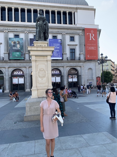 Here is Isabel standing in front of a sculpture of Isabel II (queen from 1833-1868).