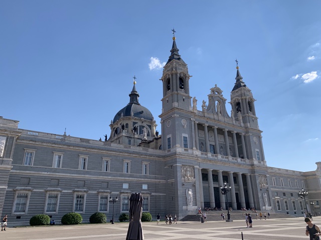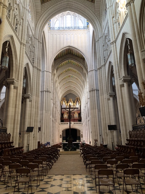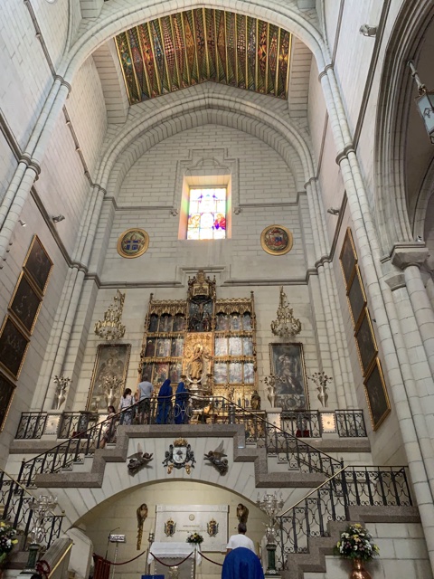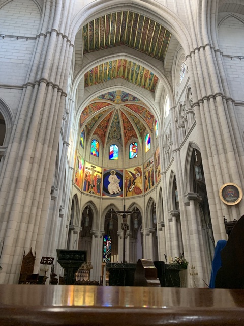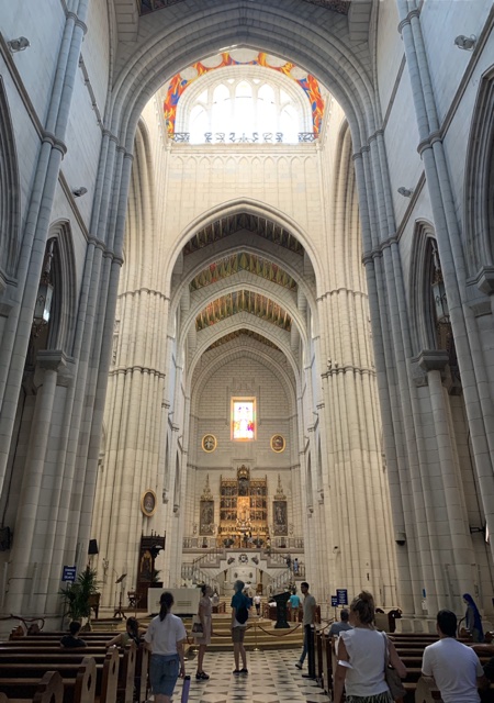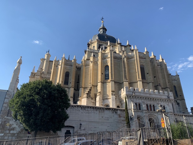 Opposite from the Royal Palace is the Catedral de la Almudena. When the capital of Spain moved from Toledo to Madrid, they wanted to build a huge cathedral, but got distracted by all the things going on overseas. They finally started building this one in 1879, but building was halted by the Spanish Civil War until 1950. It was finally completed in 1993, when it was consecrated by Pope John Paul II.