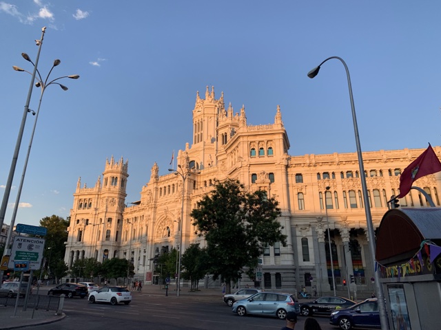 This building is the Palacio de Cibeles (Cybele Palace). Believe it or not, this was once the post office! (And the telegraph and telephone headquarters). It was finished in 1919.