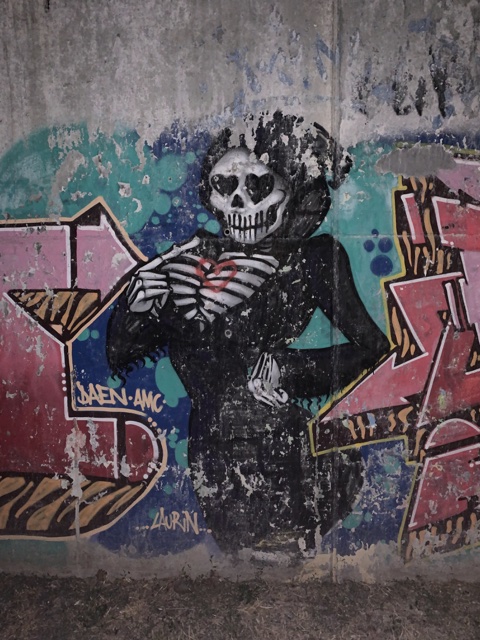 We started walking through a pretty dark area with graffiti, and I asked if it was a safe area. Alan assured me it was. This graffiti did make me wonder, though...
