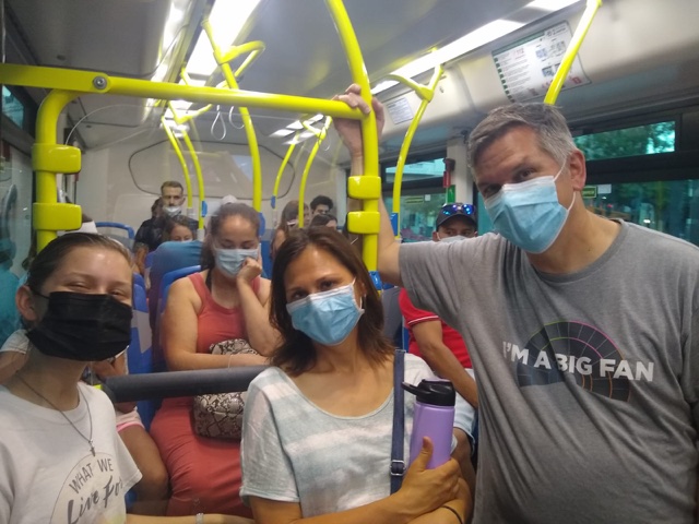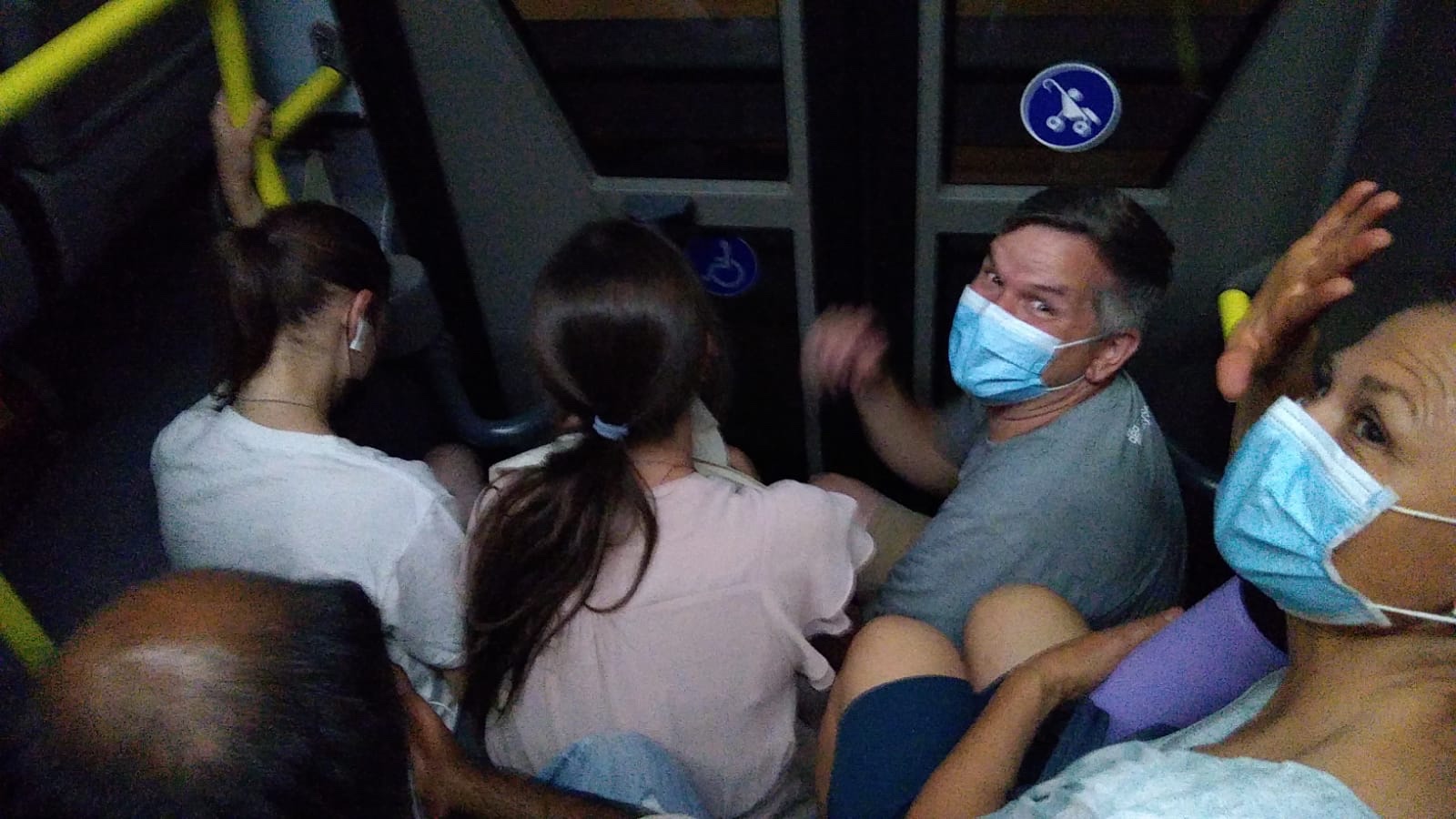 We started out a little crowded on the bus, so we had to stand.