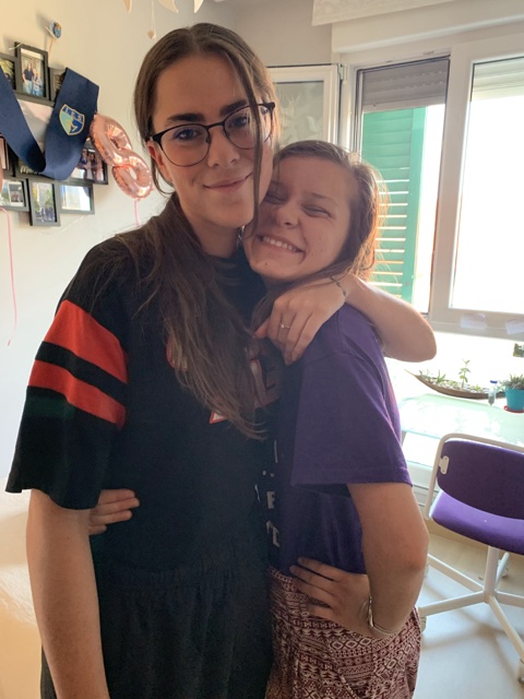 Since Vespas were such a big part of the movie Luca that we watched in Italy, Isabel got Alan some Vespa socks. She chose this spot to give them to him.