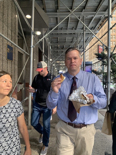 Tuesday morning, July 12, 2022, we decided to go do baptisms at the Manhattan Temple. We grabbed a bagel from a street vendor along the way.