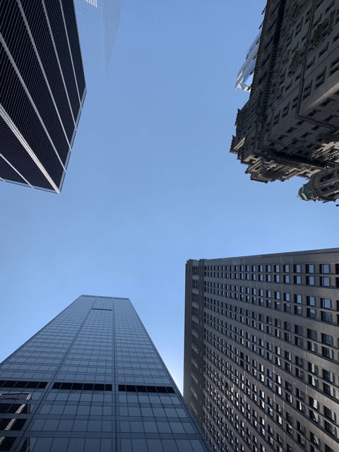 The buildings were tall in Manhattan.