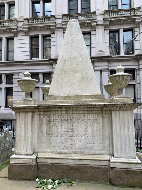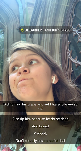 Sienna learned that Alexander Hamilton's grave was supposed to be in the Trinity Churchyard, but she didn't have much luck finding it.
