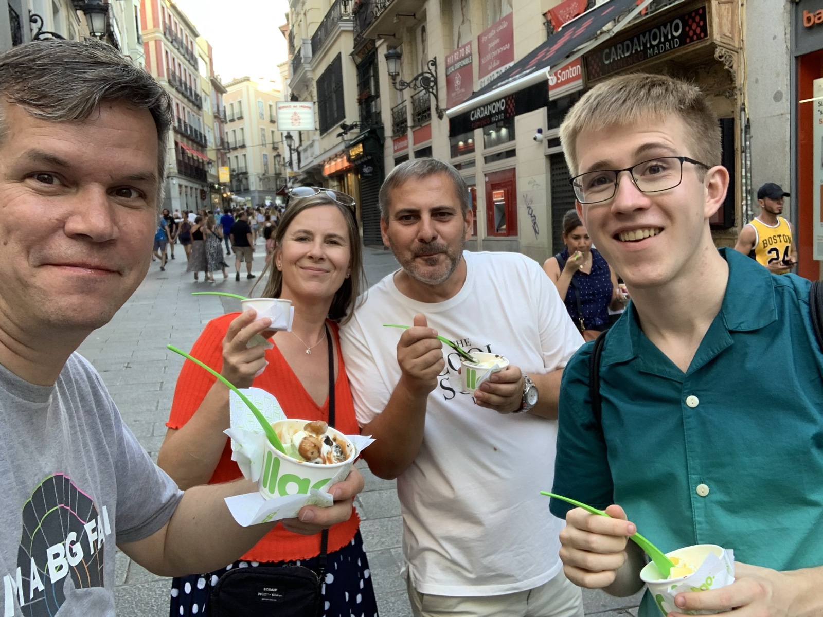 The desserts were wonderful, but they did cause us to miss the last train back to Parla, so we had to take a metro partway and then catch a late bus.