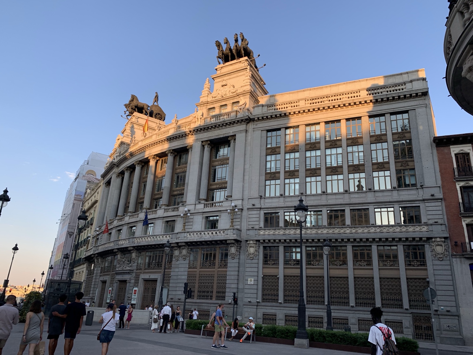I think this was a bank that was built in the 1920s. The horses and chariots on the roof are cool.