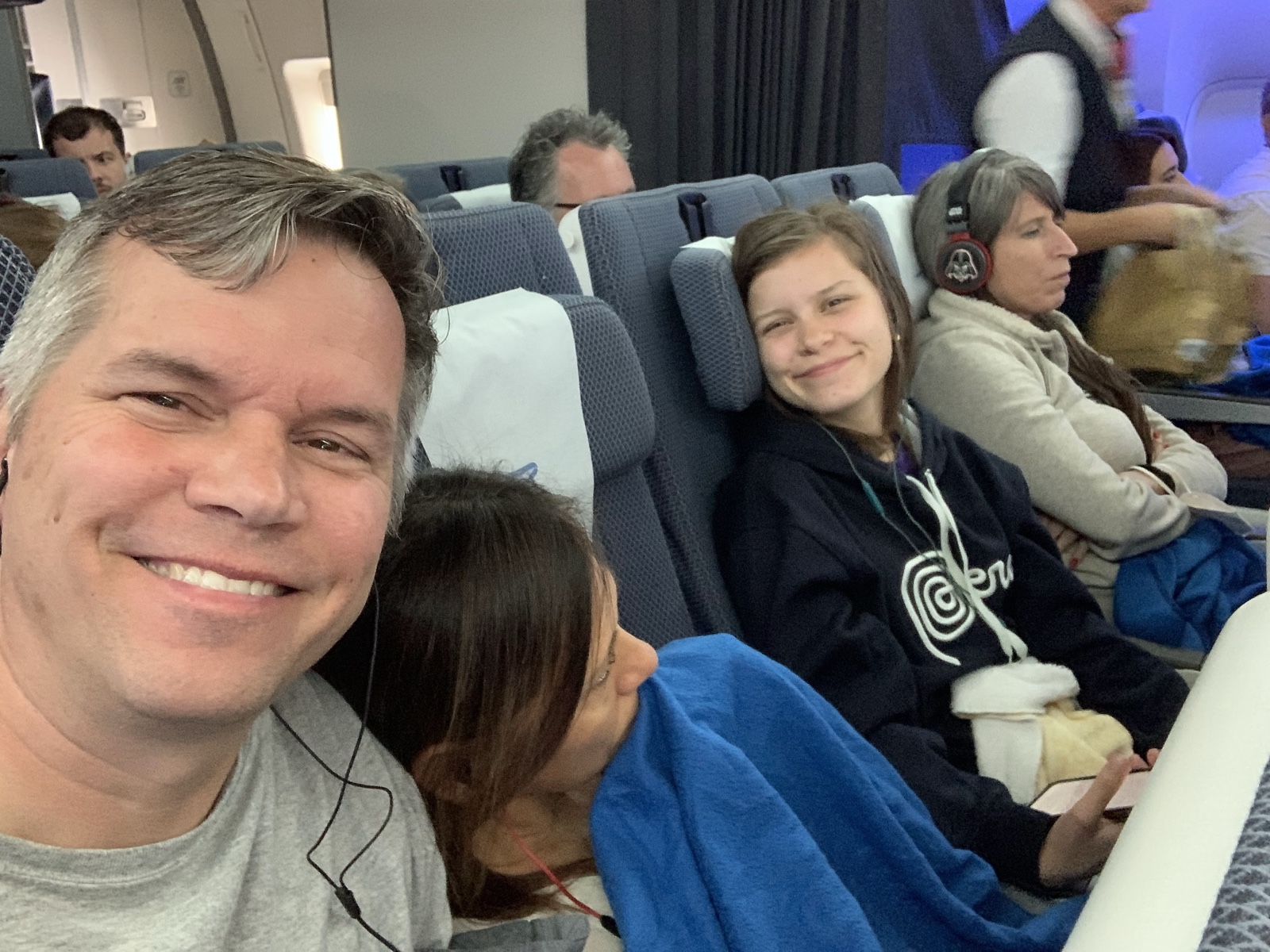 On the way to Europe we felt like we were supposed to try to eke out some sleep, but on this flight, the strategy was to stay awake. So we watched movies the whole way!