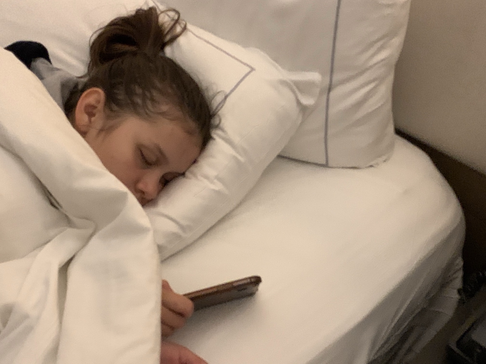 When we got to New York City, Sienna and I just wanted some easy quick food, so we went to Wendy's, though it turned out to be a pretty crummy one. We ate back at the hotel room, and then I found Sienna asleep with her phone in her hand. I pulled it out to charge, and she didn't wake up. Apparently our strategy of staying awake until night in the new time zone worked well.