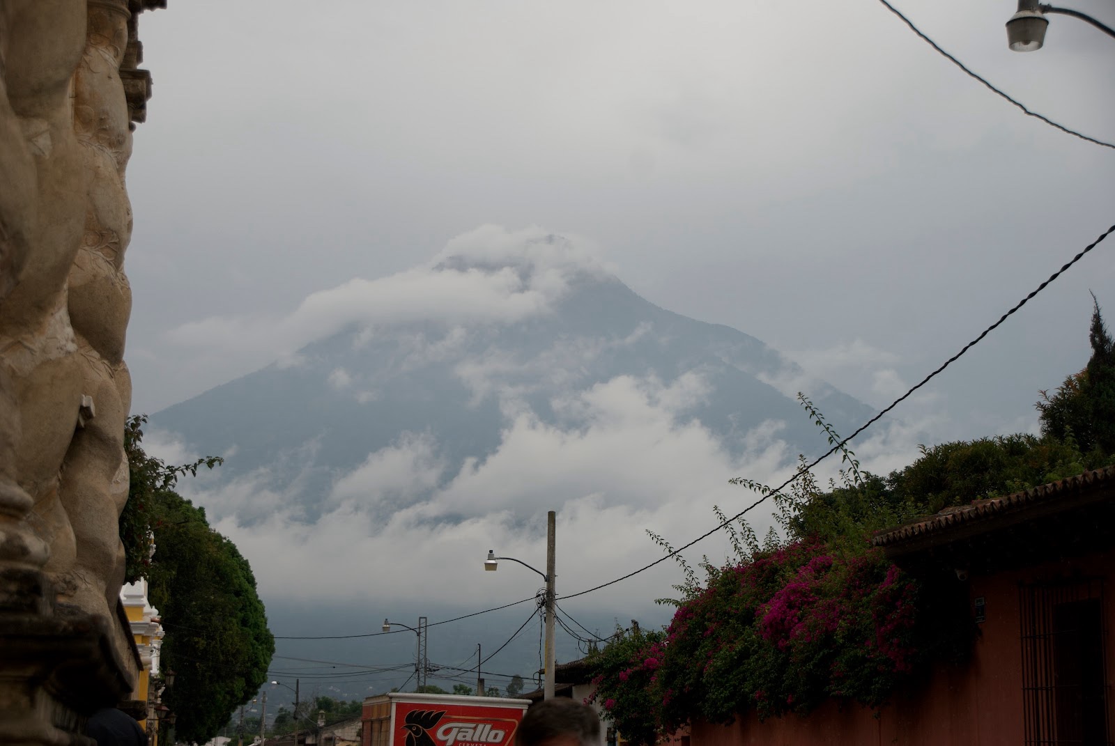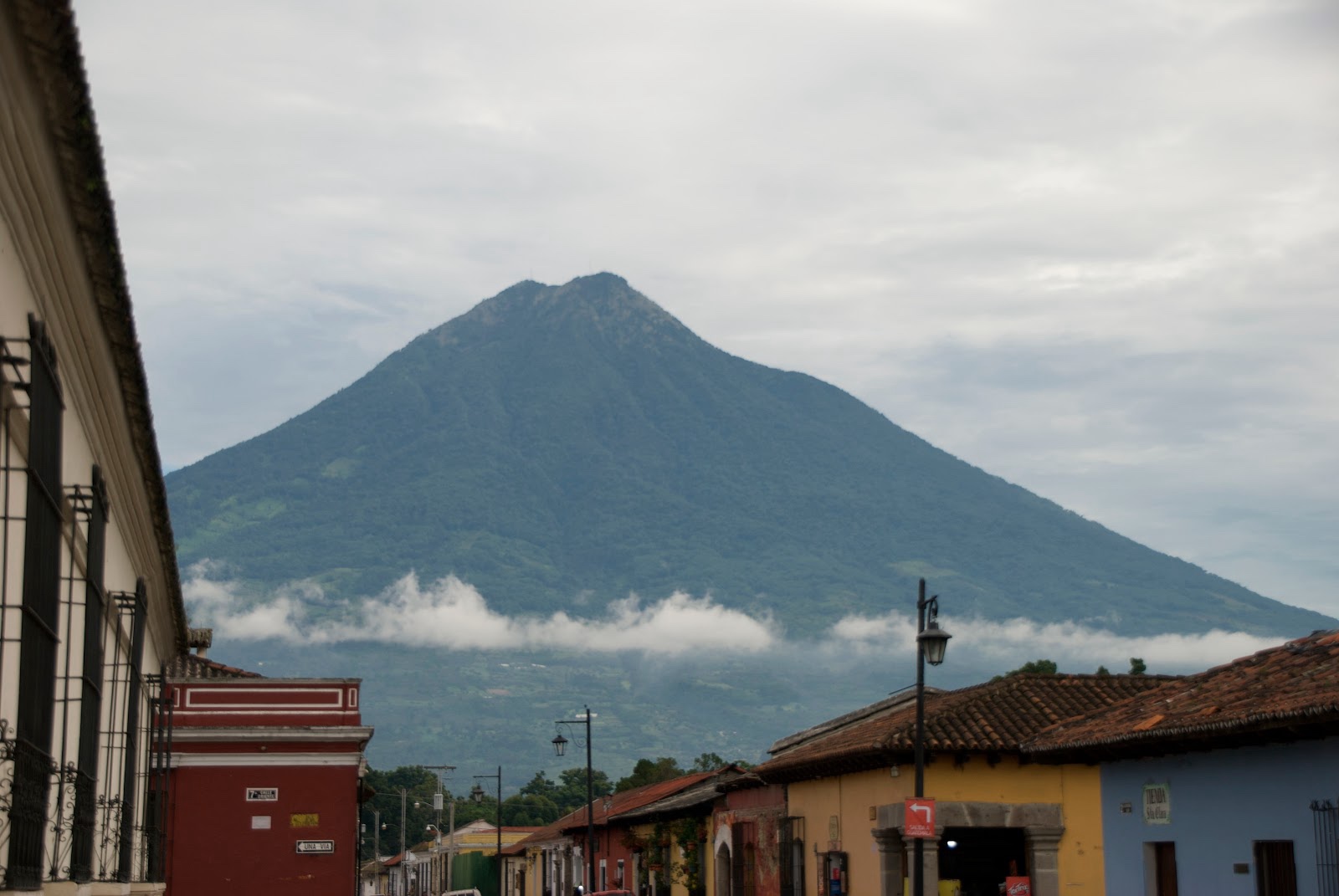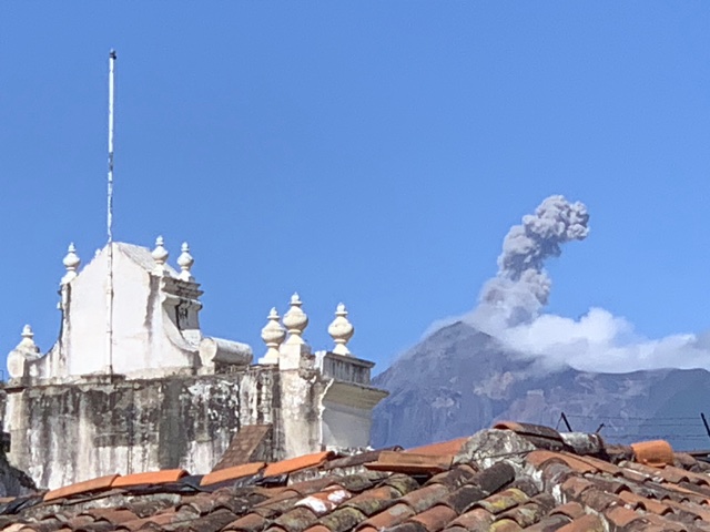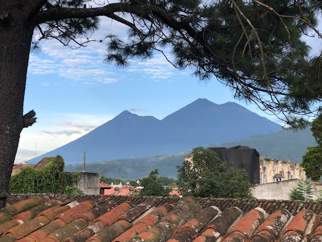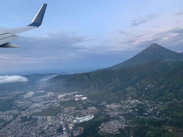 We flew all night and got just a little sleep, and then it was morning. As we approached Guatemala City, we could see the volcanoes that tower over it.