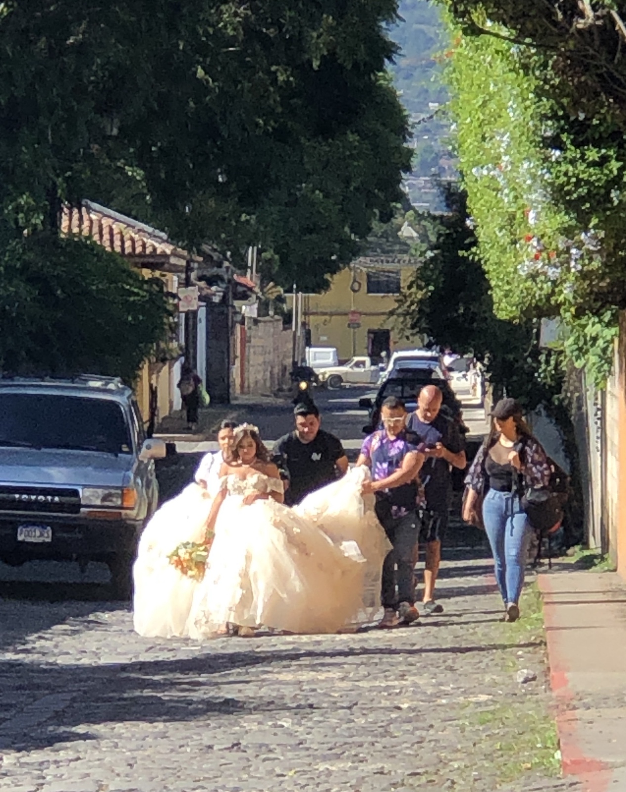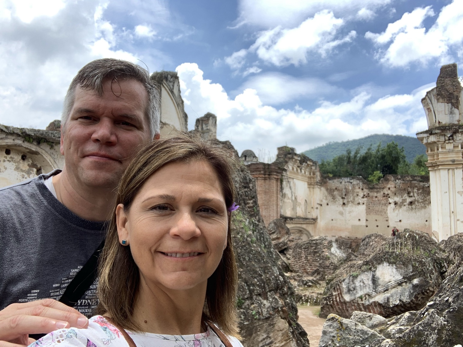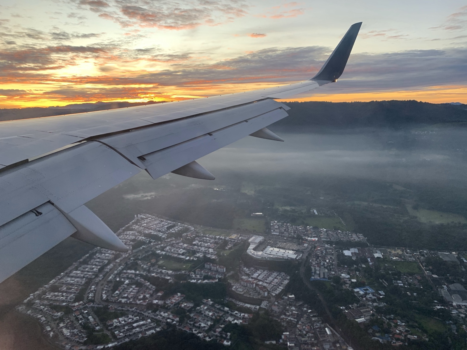 We flew all night and got just a little sleep, and then it was morning. As we approached Guatemala City, we could see the volcanoes that tower over it.