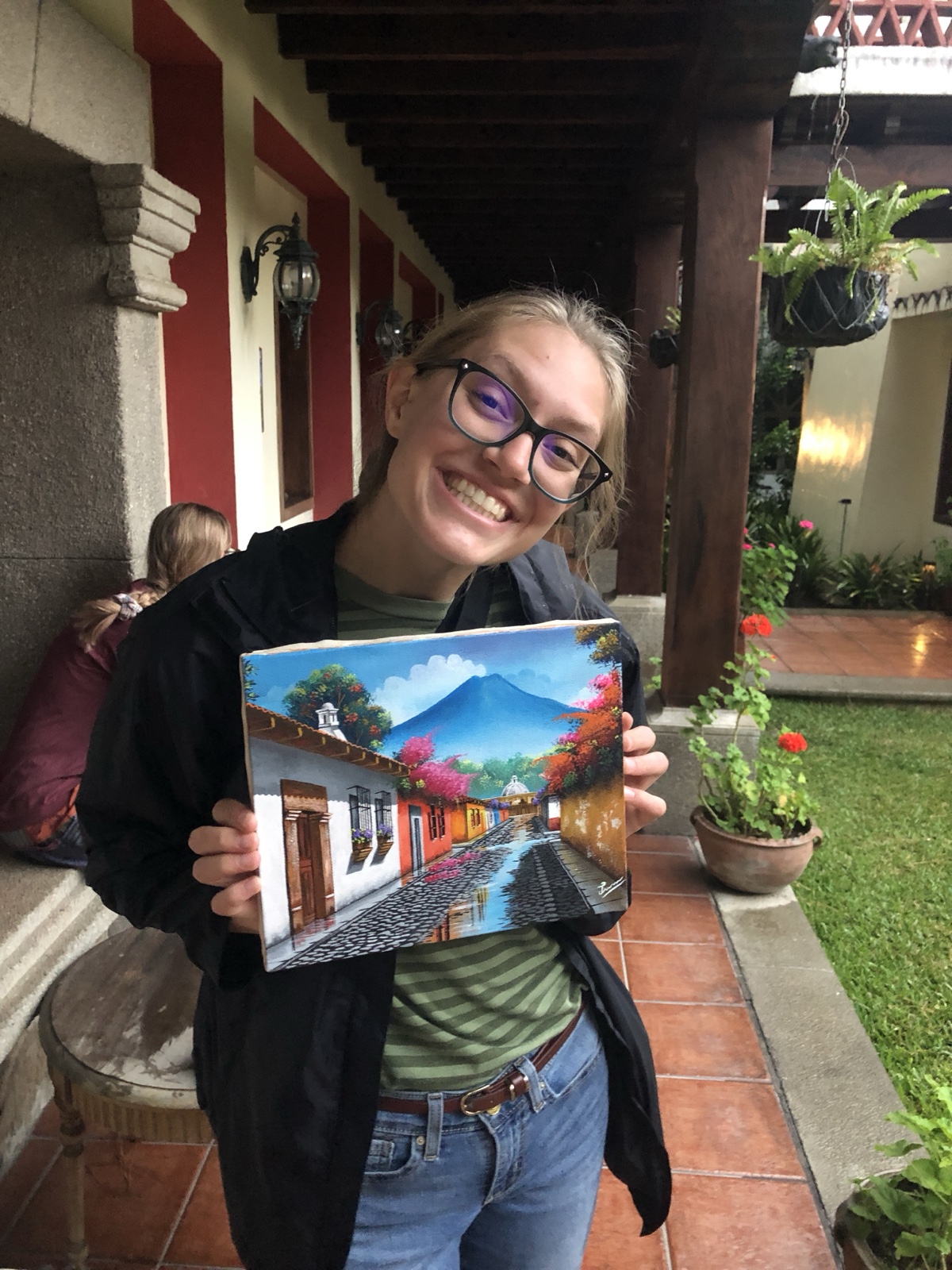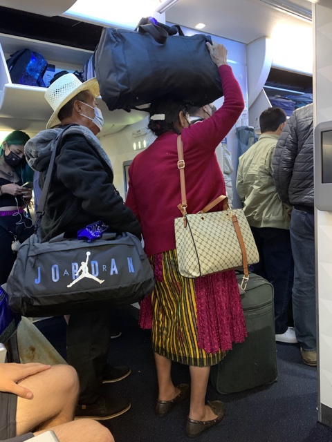 As we waited to get off the plane, I could already tell we were in Guatemala (The traditional clothing and the bag on the head made me happy).