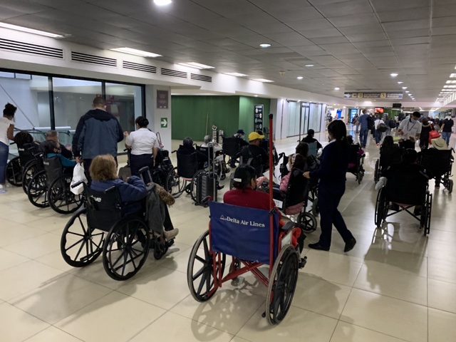 While we waited, I had a delightful conversation with these two nice people. They turned out to be Jehovah's Witnesses who were there to finally re-open their information cart at the airport after it was closed for so long due to COVID.