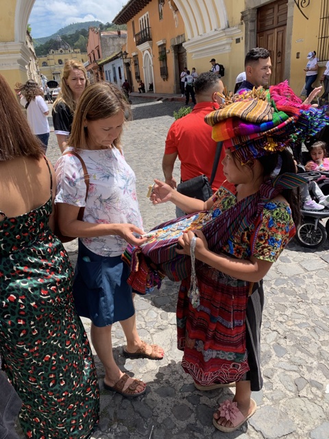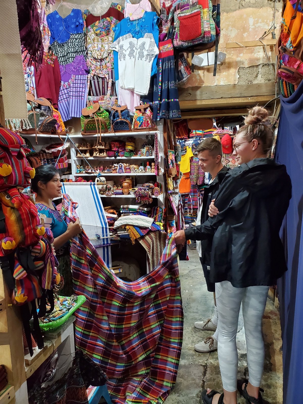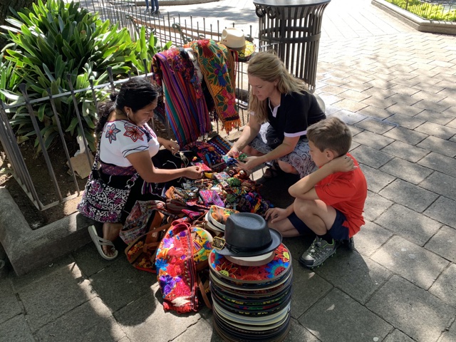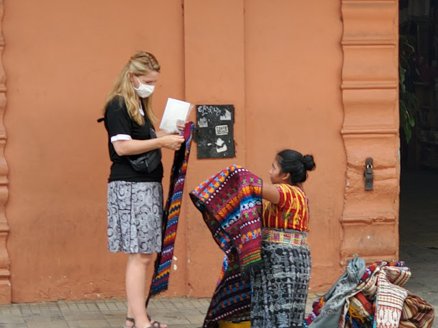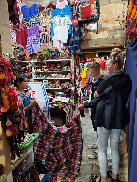 Once we were settled, we all headed out to explore the town. We went into one market where everyone had a "special price just for you." I love the vibrant colors of Guatemalan textiles, so it was fun to see what they had.