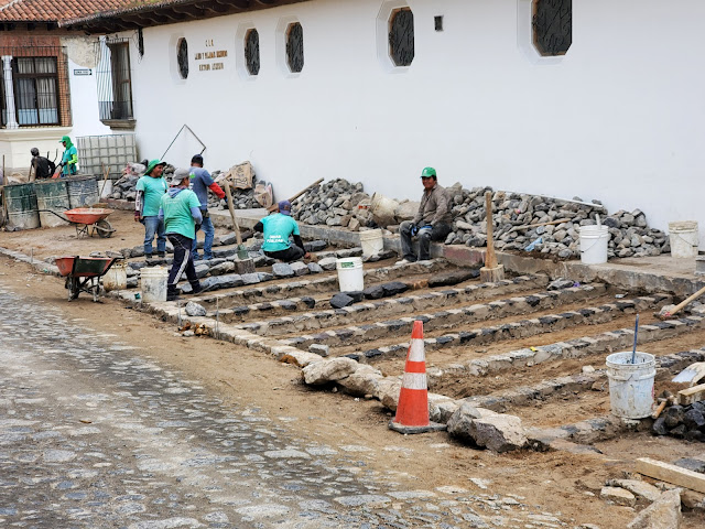 The roads around town were so bumpy that it was painful to drive on them, so we never used our car until it was time to leave. It was interesting to see one of their cobblestone roads being rebuilt, using rows of carefully-placed smooth stones and then more random stones put in between.