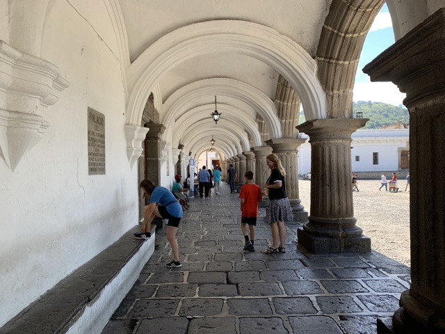 The Royal Palace of the Captains General faces the main plaza, and its arches are impressive.