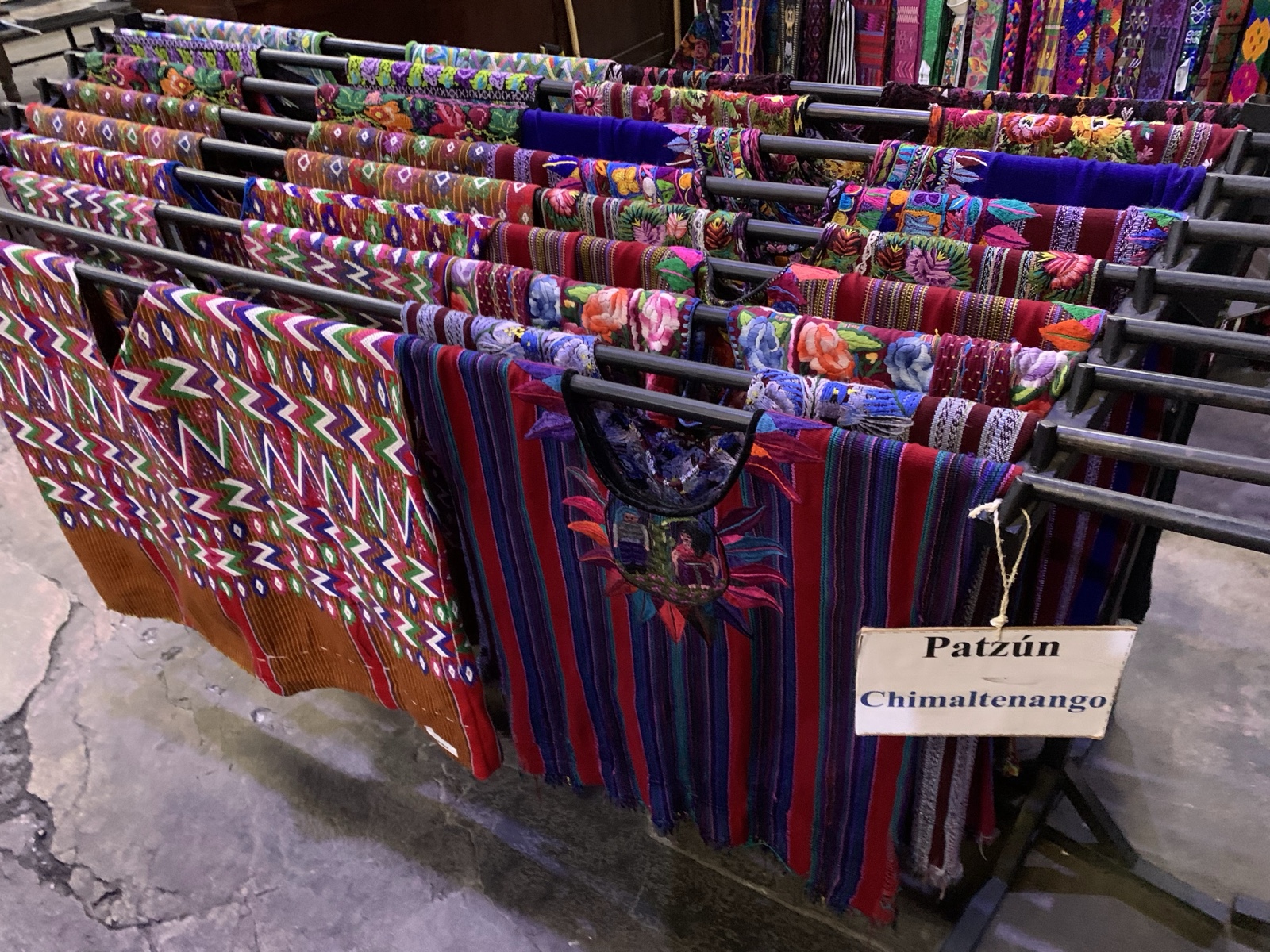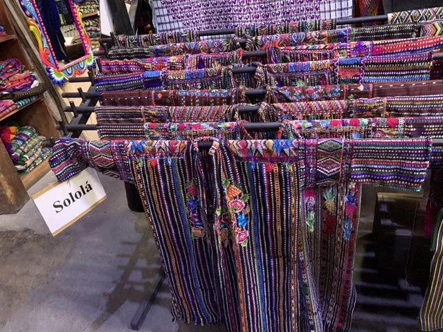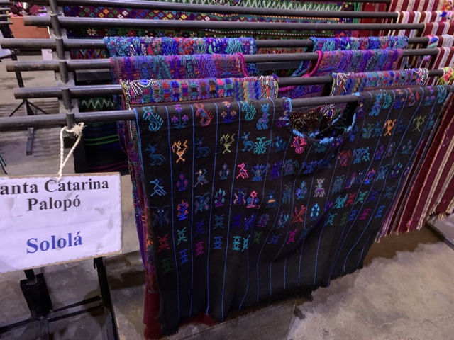 We went into a textile market, where there was a wonderful variety of handmade textiles from around Guatemala. Each Mayan village has their own distinctive pattern and set of colors. When we took pictures of the costumes of kids at the cultural celebration before the Quetzaltenango temple dedication in 2011, the lady at our bed & breakfast looked at our pictures and immediately identified where each costume was from, without the slightest hesitation.