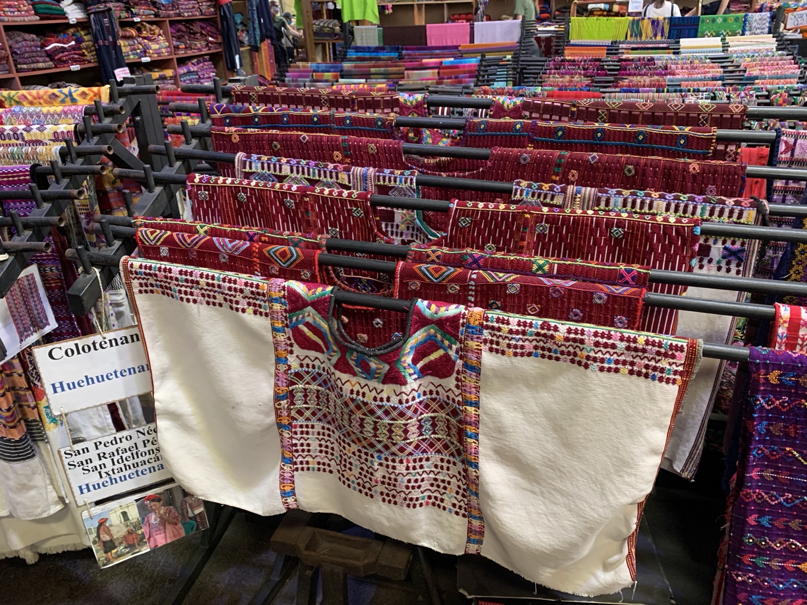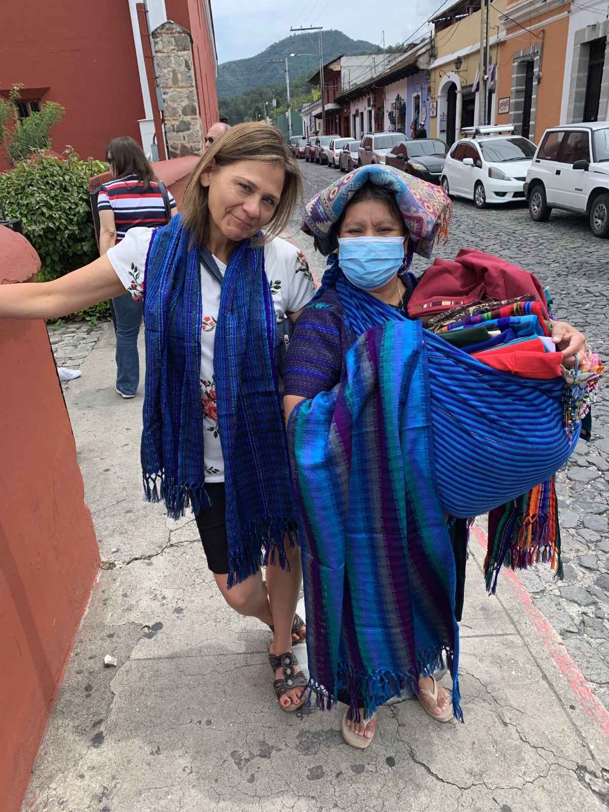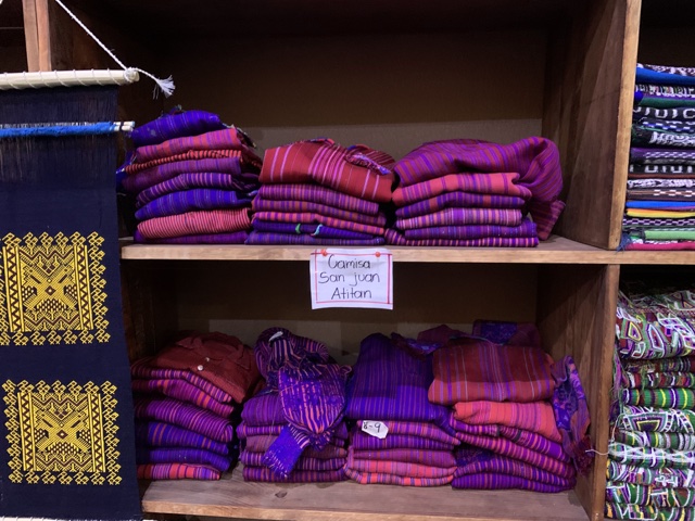 As we walked out of there, we saw this lady selling shirts and cloth. I really liked the deep purples and blues, so we bought a shirt and table runner from her. It turned out that she was from San Antonio Palopó, on Lake Atitlán, which is exactly where we were going to be staying that night!