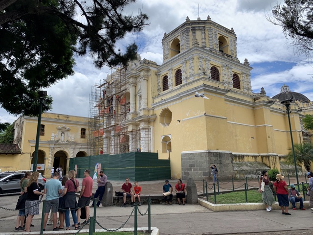 We walked a couple blocks up to Iglesia de la Merced, a yellow, 17th-century church. Most of us were wearing shorts and thus were not allowed inside, but a few of the gals went in to take a peek.
