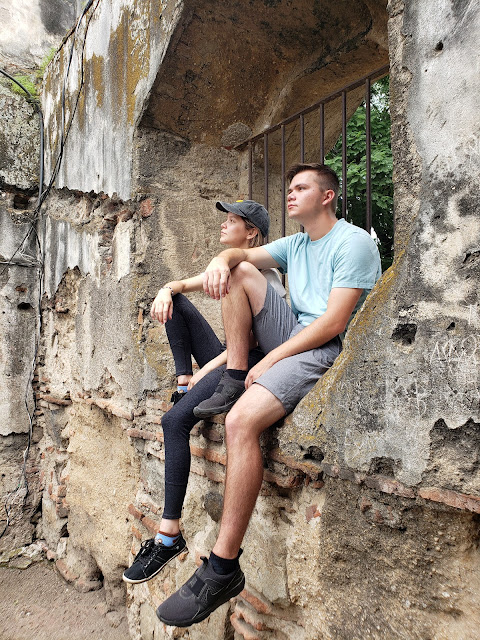 Mikayla and Jared often do this pose. The fun thing about this picture is that you can just barely see Sienna in the archway clear over on the other side of the ruin doing the same pose! :)