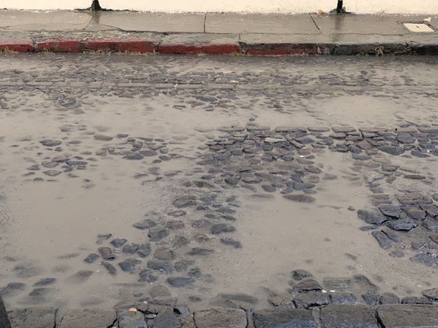The cobblestone streets had the advantage that they were uneven enough that you could usually find a way through the street that avoided the deep puddles.