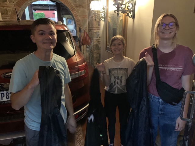 Guatemala doesn't really have the four seasons of spring, summer, fall and winter. Instead, it has a "dry season" and a "rainy season". We were there during the rainy season, and the forecast called for thunderstorms every day of our trip in all of our locations. However, it was very often quite nice for most of the day and then rainy for just a bit in the afternoon. So we took ponchos to deal with the rain when it hit, and it didn't slow us down much.