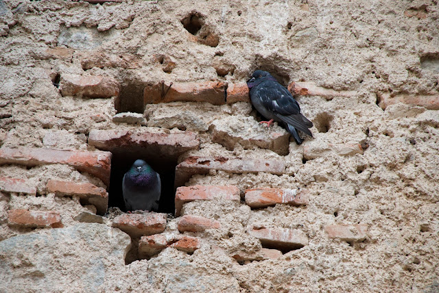 These pigeons almost look like they're built into the wall.