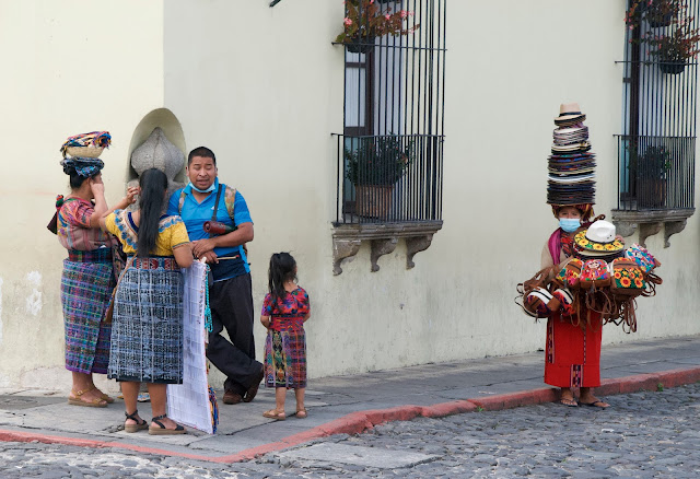 Here's another gal who "wears many hats," and some traditional folks hanging out on the corner.