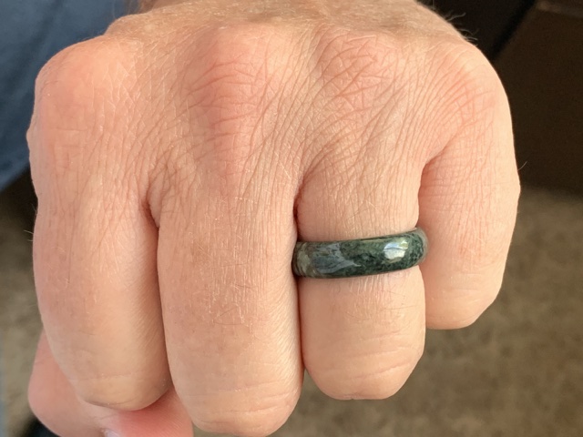 I didn't wear my gold wedding ring on this vacation, so Linette got me a beautiful dark green jade ring to use in its place. "Look, we're married!" she said.