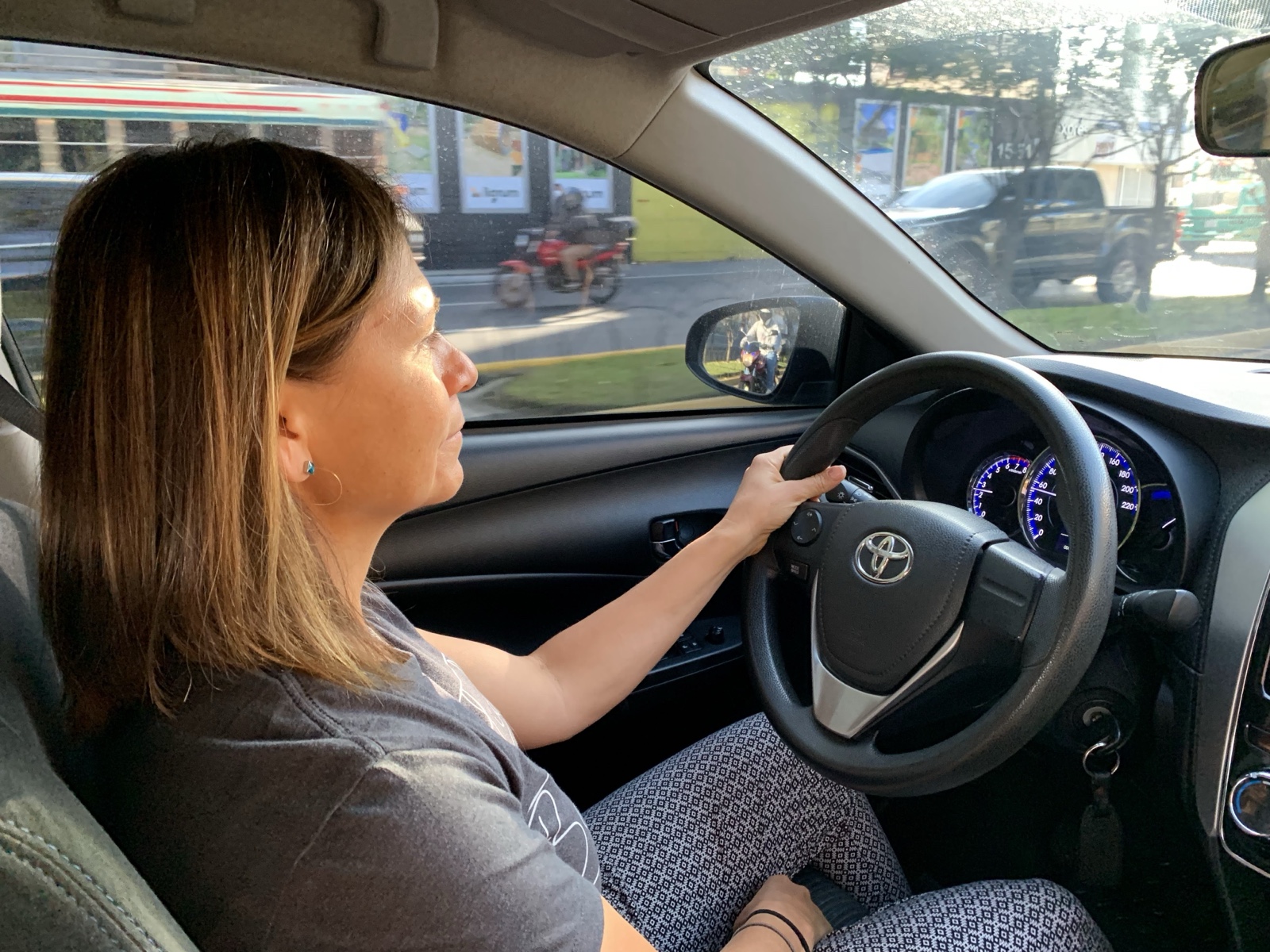 We split up at that point to each pick up a car from a different company. We used "Thrifty" (pronounced "TREEF-tee", with a flapped "r"). We got a little Toyota Yaris that we named Yolanda. Linette drove (stick shift!) while I navigated. She did awesome.