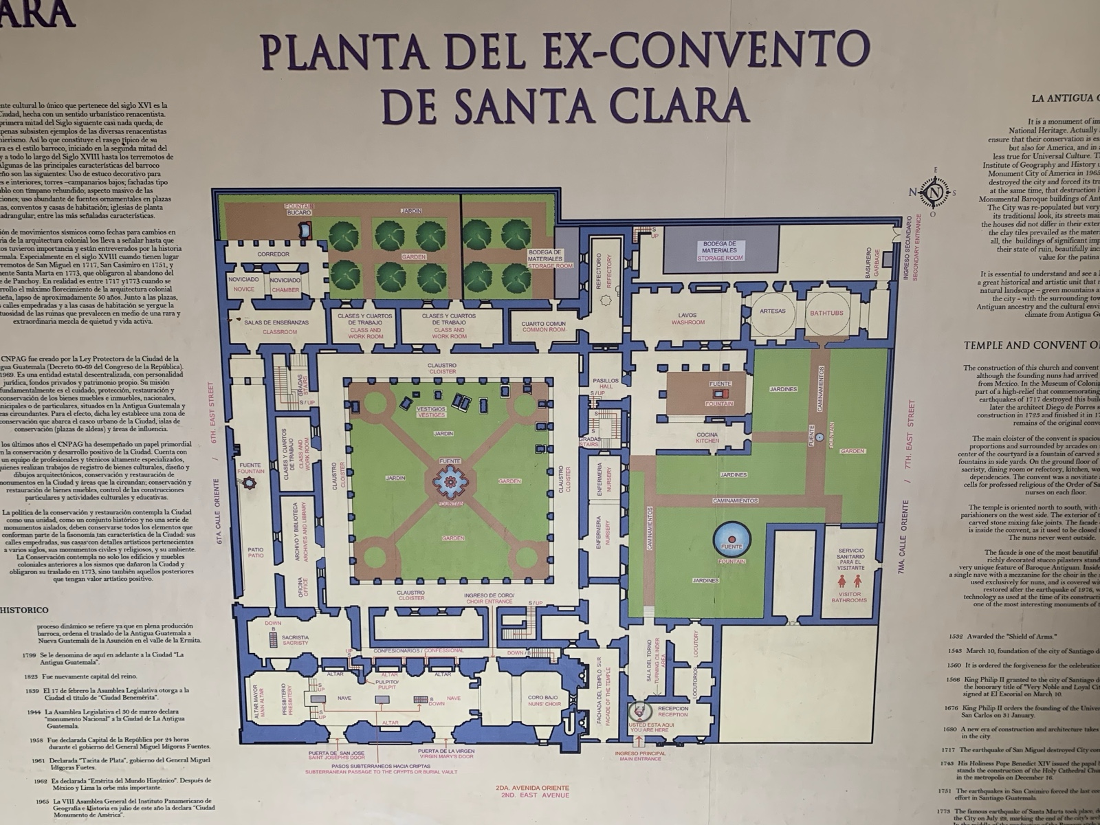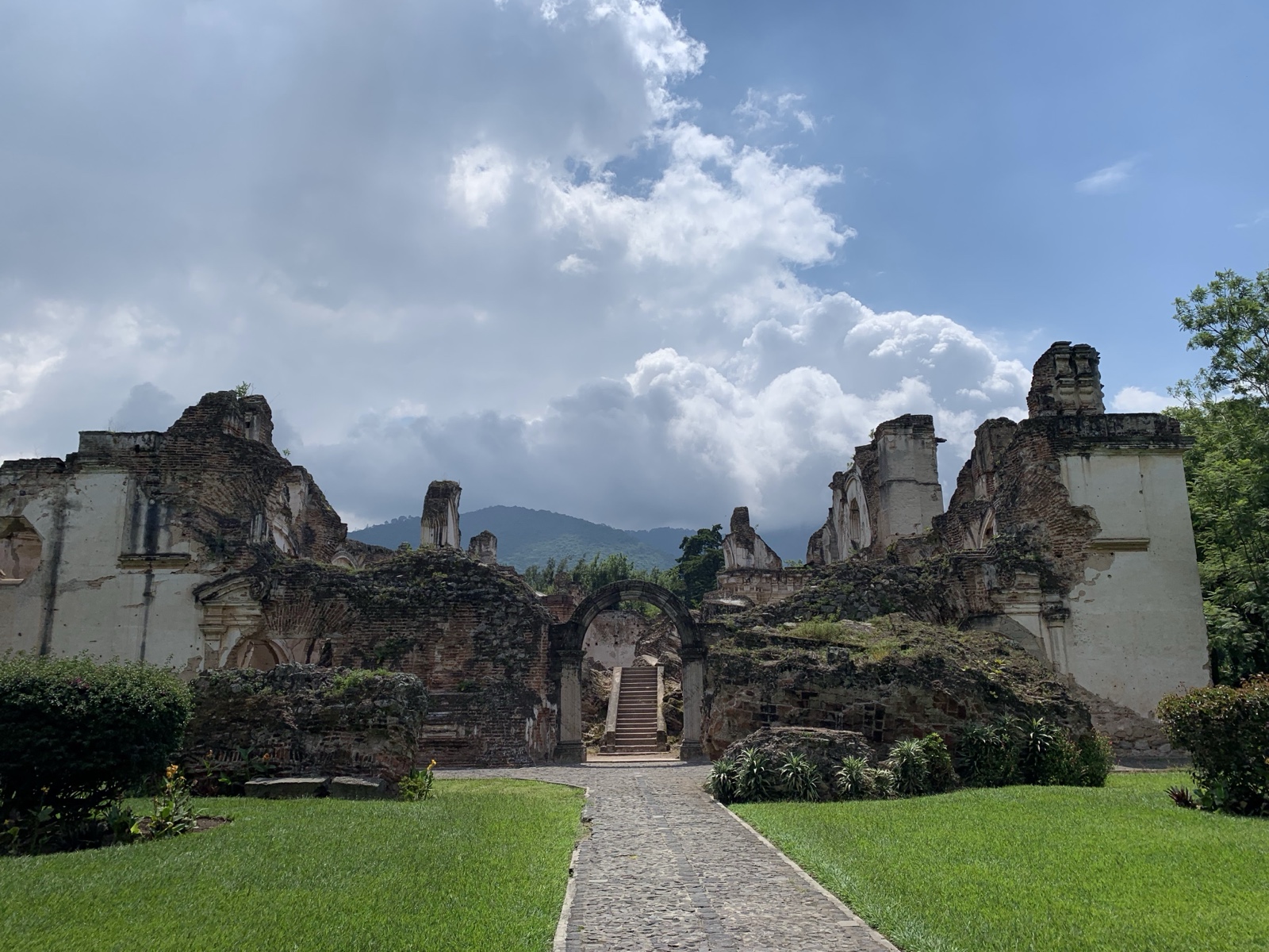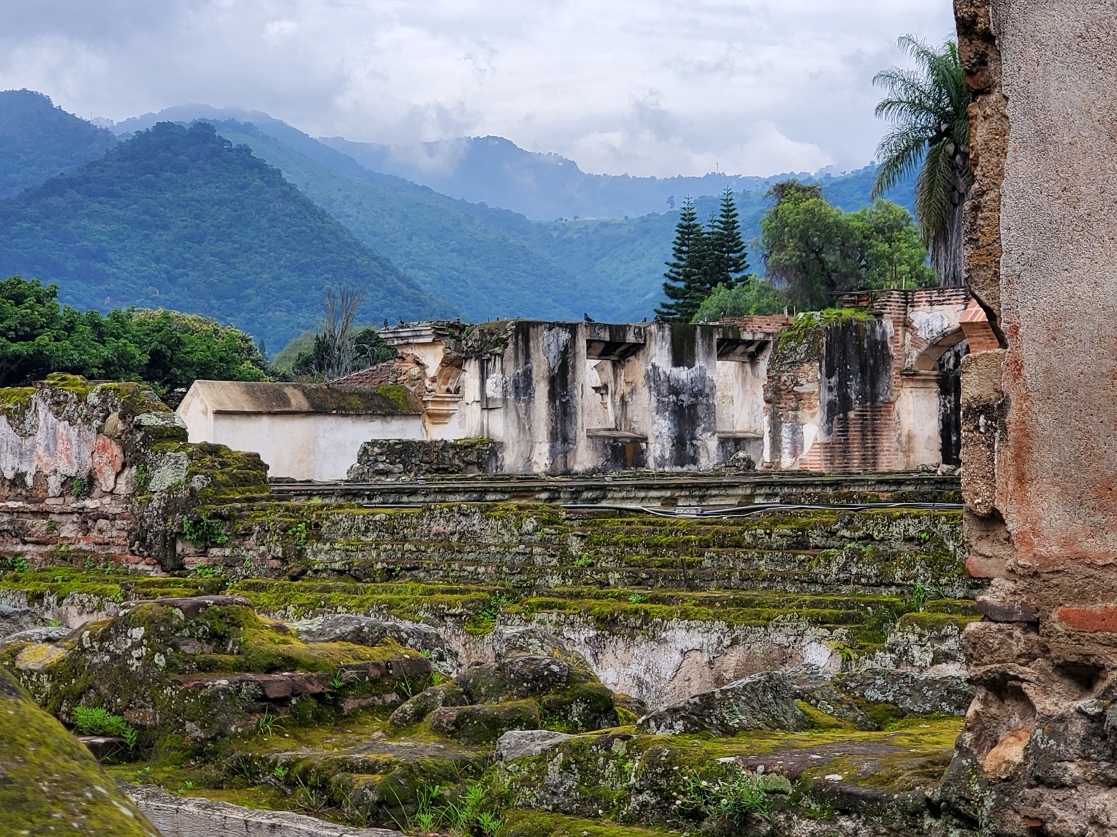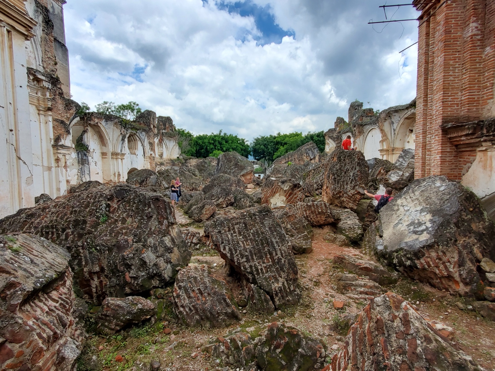 It was repaired by about 1740 and housed 35 friars, but it was damaged by a 1751 earthquake and destroyed by the 1773 one. Since that time, people have hauled off portions of the rubble to build other structures.