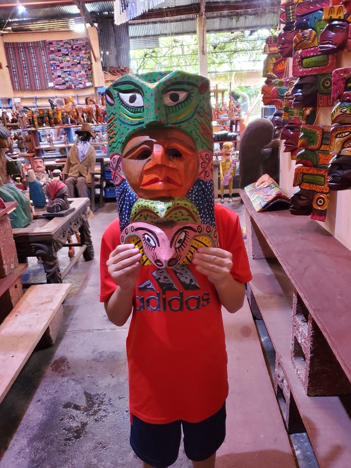 The place also had brightly colored wooden masks.