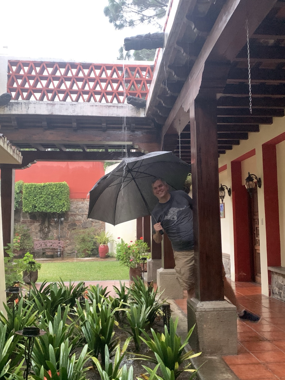 About that time, the promised rain finally unleashed, and we headed back to the house along dripping rooflines and flooded streets.