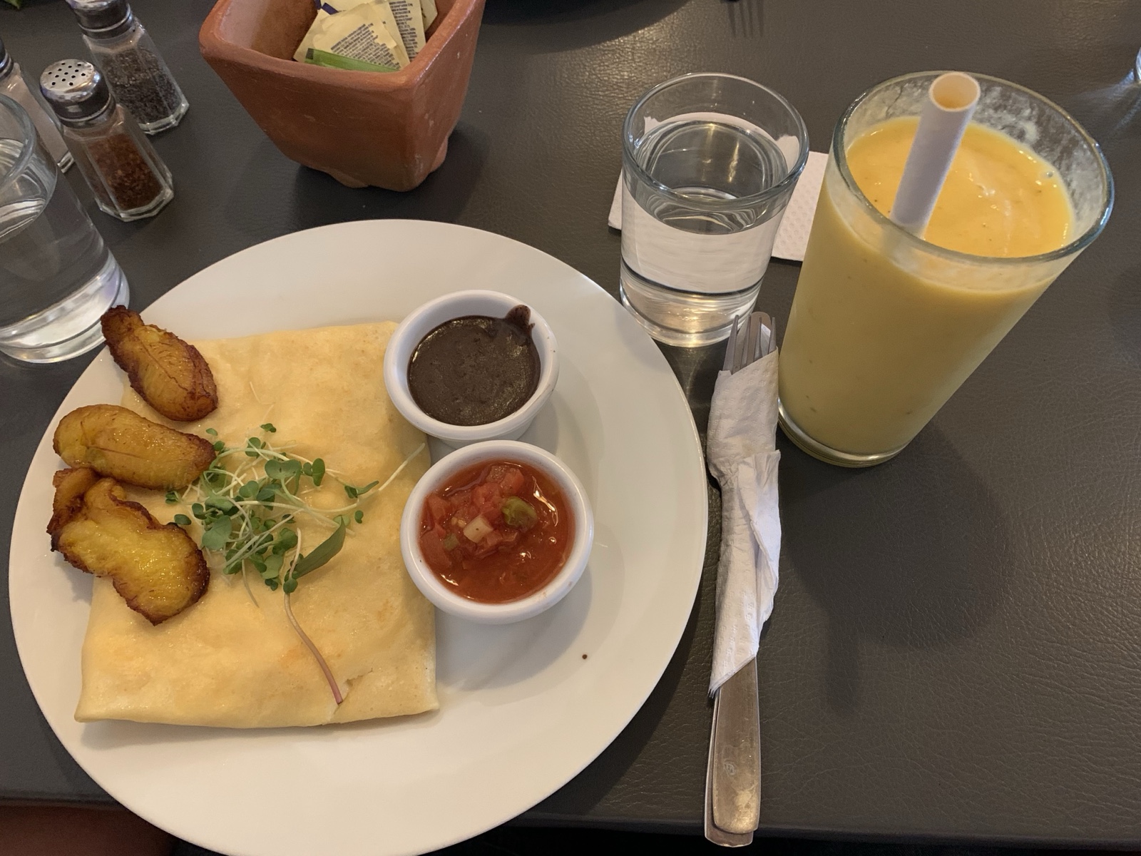 I got eggs inside a crepe, which was great, and got an amazing smoothie.