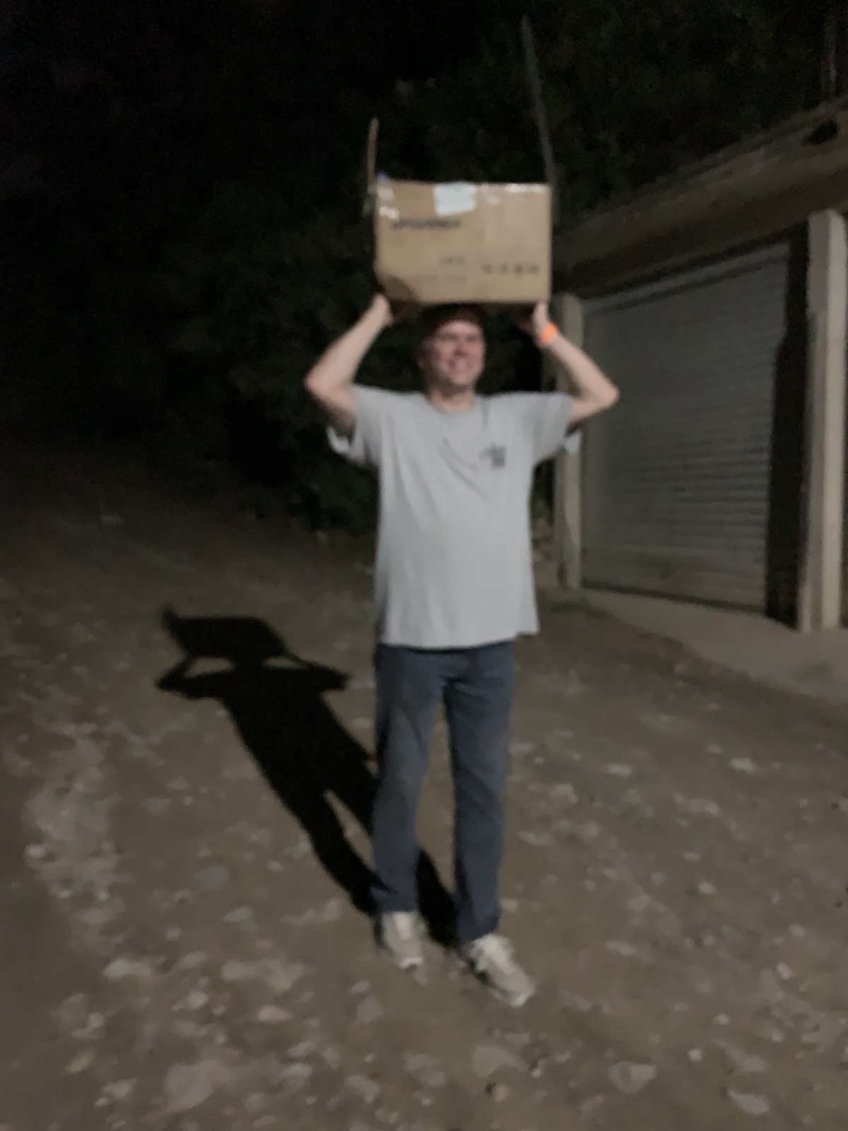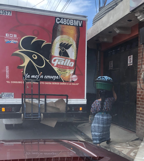 They gave us a sagging cardboard box to carry it in, and I carried it Guatemala style (cheating by using my hands, cuz I didn't want to drop the eggs)