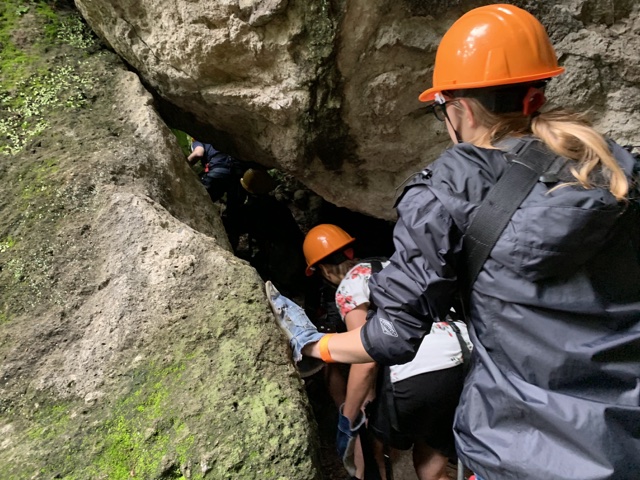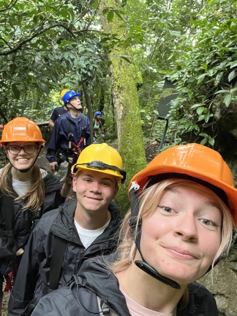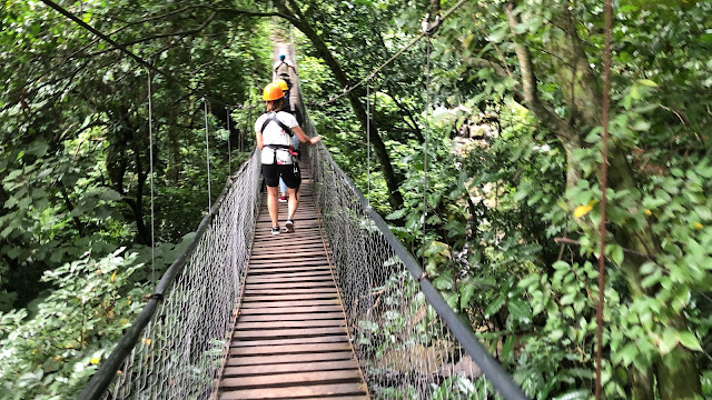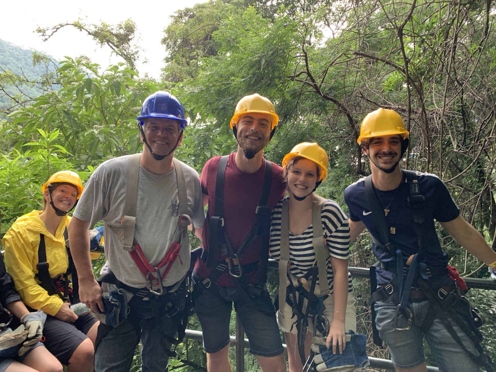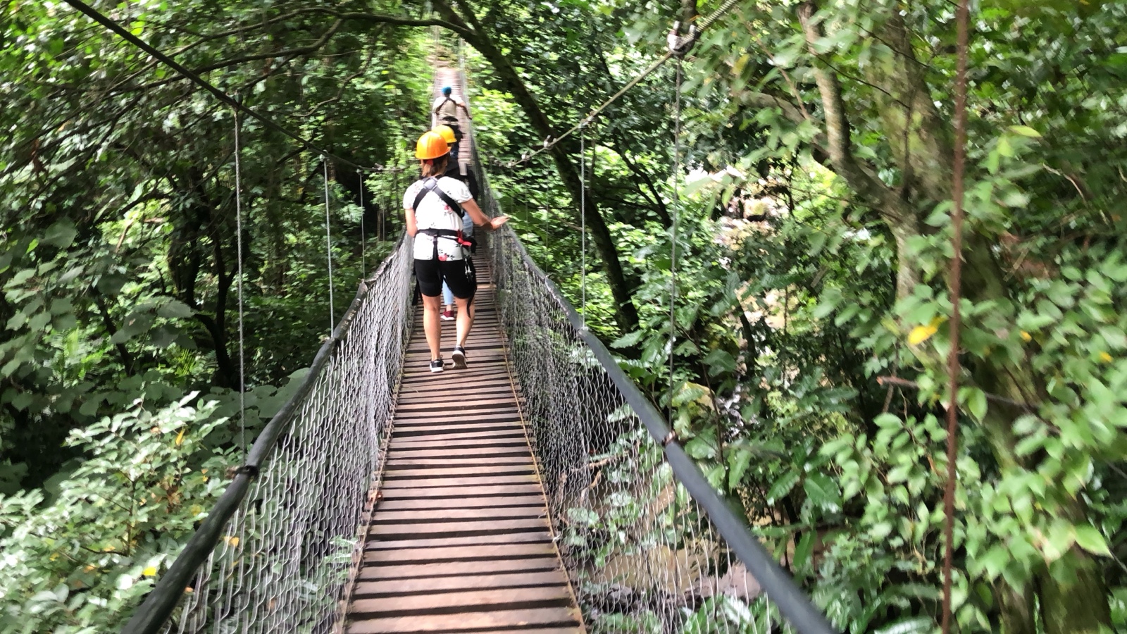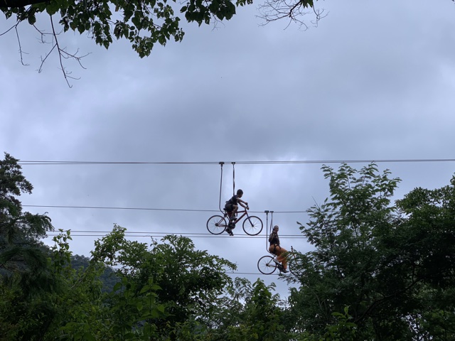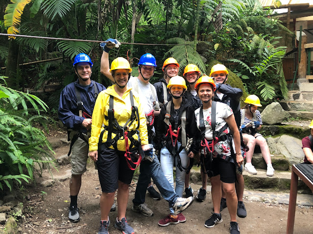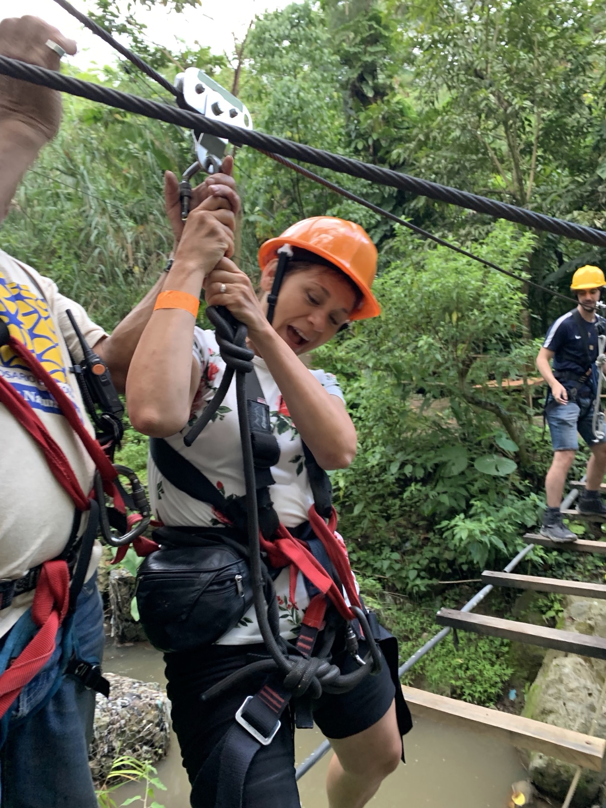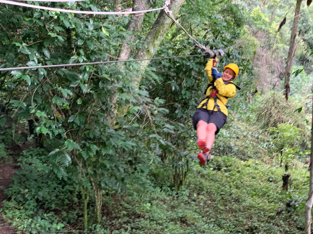 The gal from Israel was scared enough on her first zip line that she applied too much brake and got stuck, so our guide had to zoom out and grab her. Sienna got stuck once, too, just from being so light.