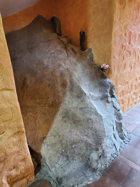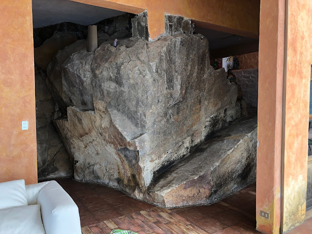 The house was built into the face of a cliff, and there was exposed rock in several places throughout the house.