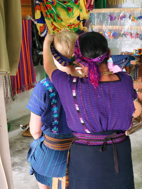 Each Mayan village has its own distinctive patterns and colors that it uses in its traditional clothing. The clothes aren't identical, as each person uses their creativity to weave in their own ideas and symbols, but many people in Guatemala can look at what someone is wearing and immediately know where they're from.