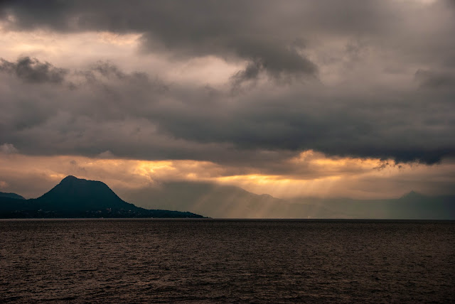 Roger took a couple of time lapse videos of the lake that evening. This one is 17 seconds long, and it's fun to see the clouds dance around the volcanoes.