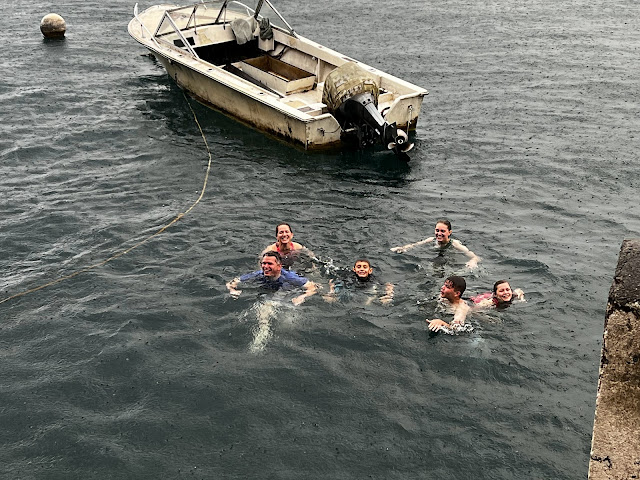 Roger and Mike watched the pouring rain from above and eventually came down to join us. Roger took a dip in the lake as well.
