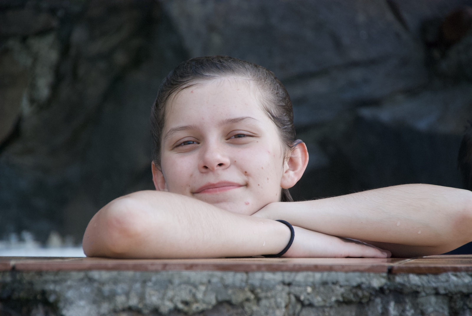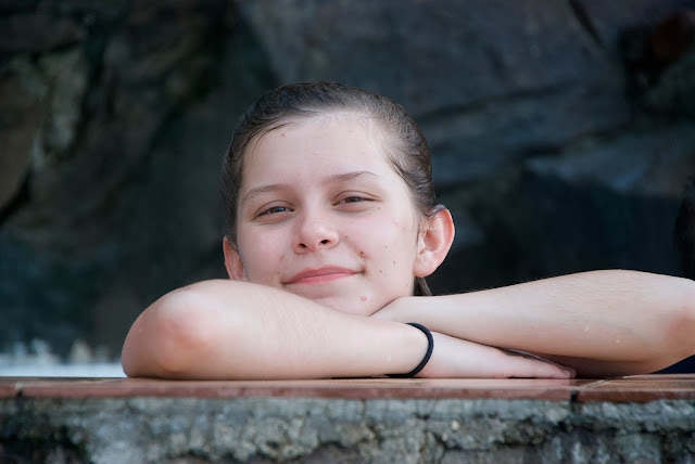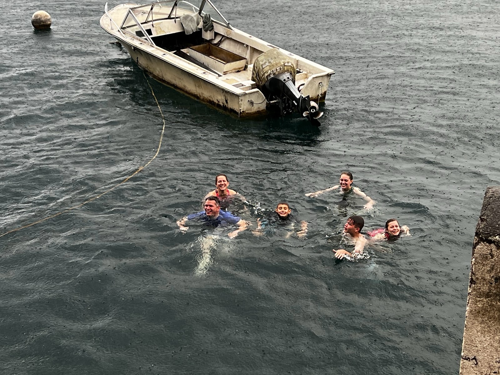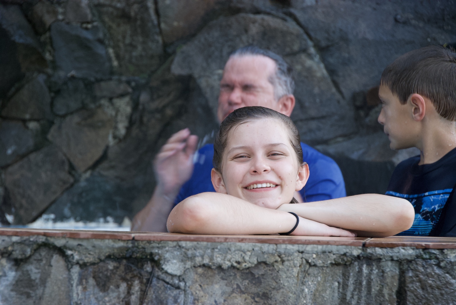 After awkwardly going up and down the slippery ladder, Shaylee discovered stairs we could have used that go right into the water.