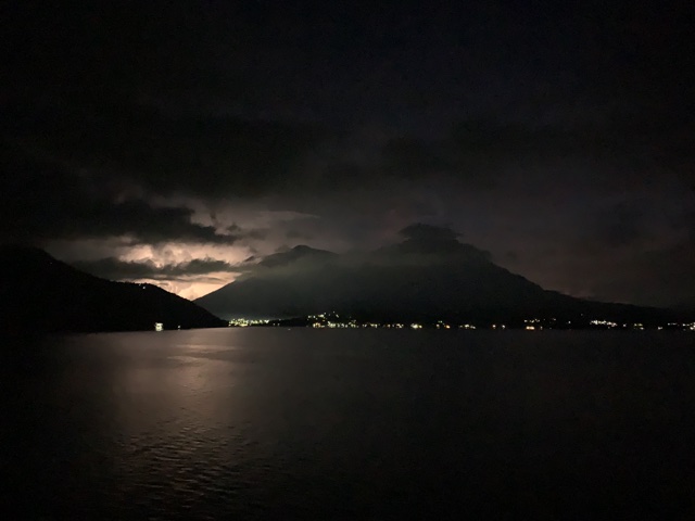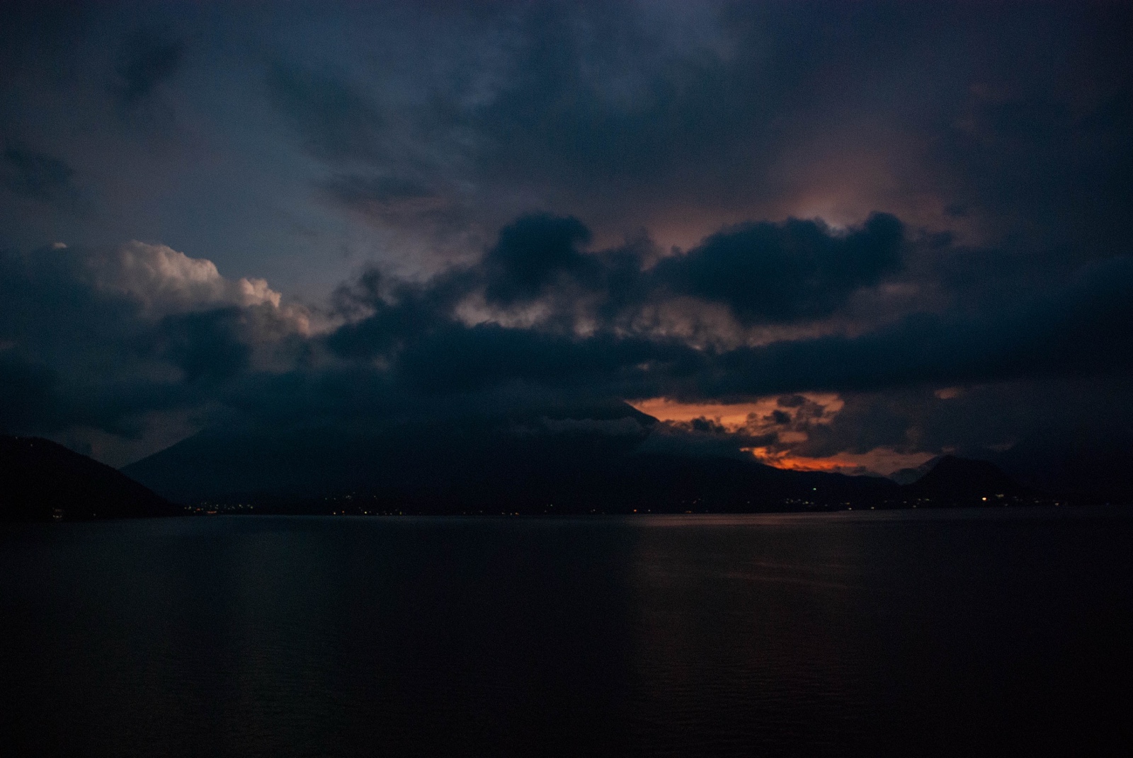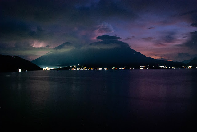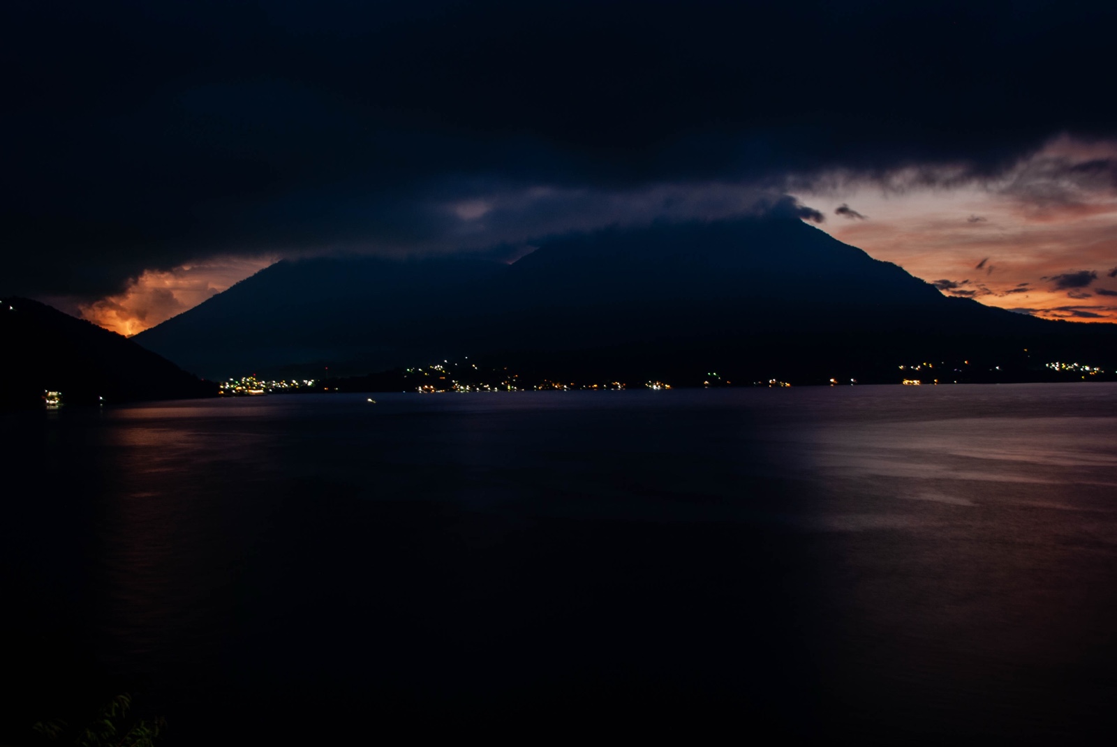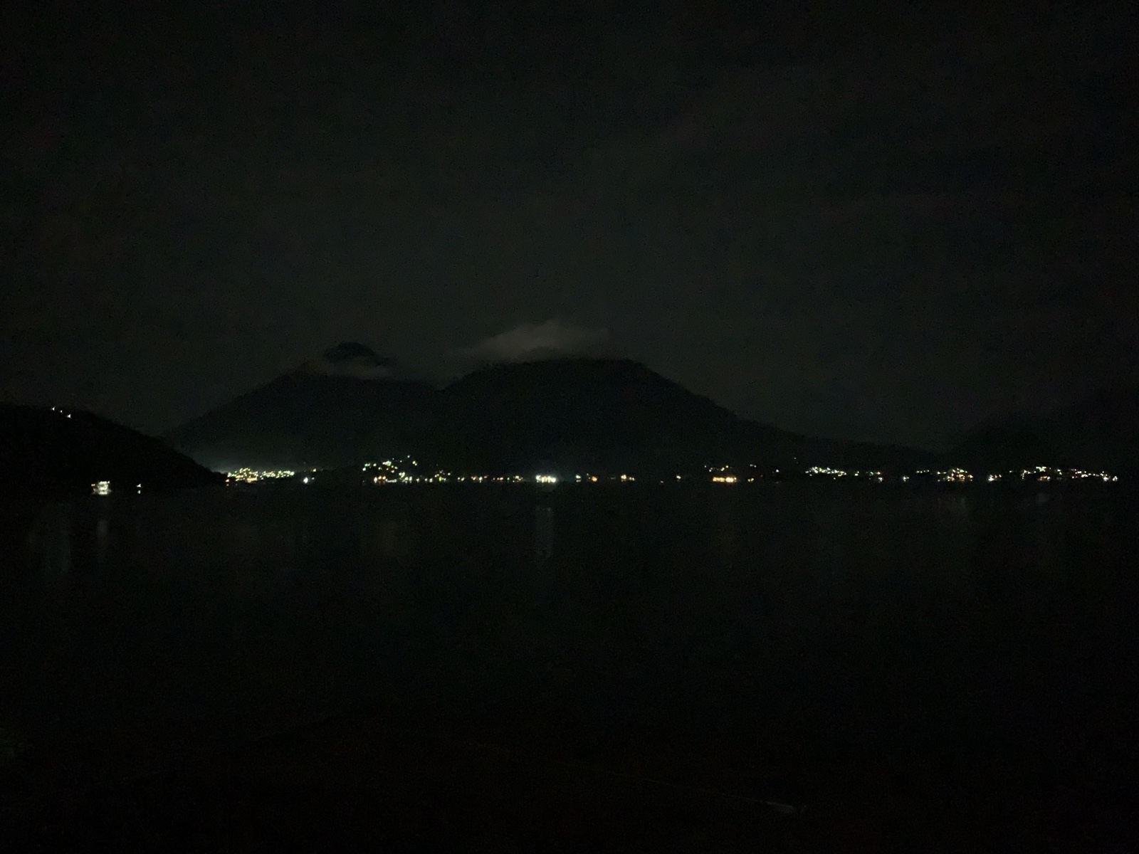 It was very dark there, but we could still see a subtle outline of the volcanoes against the sky, with lights from the surrounding villages reflecting off of the lake.