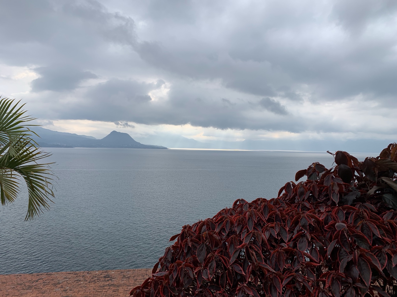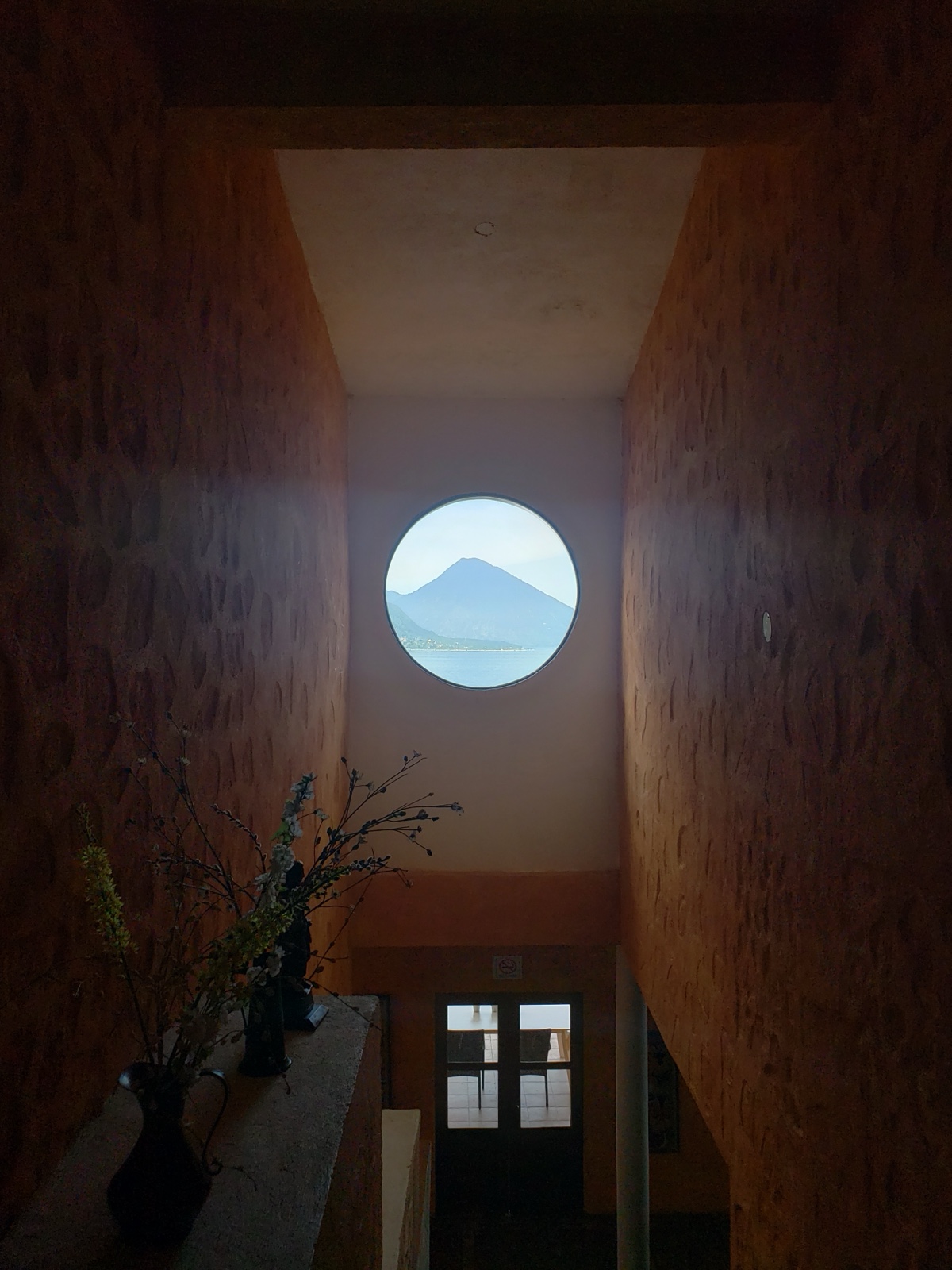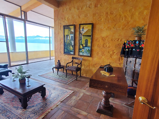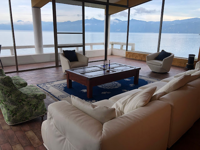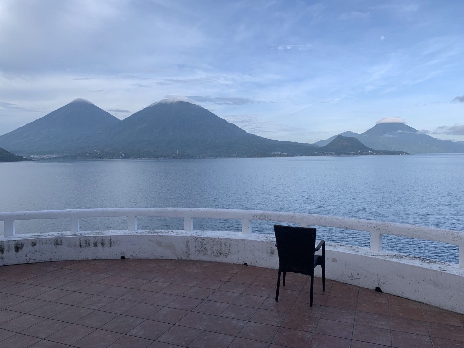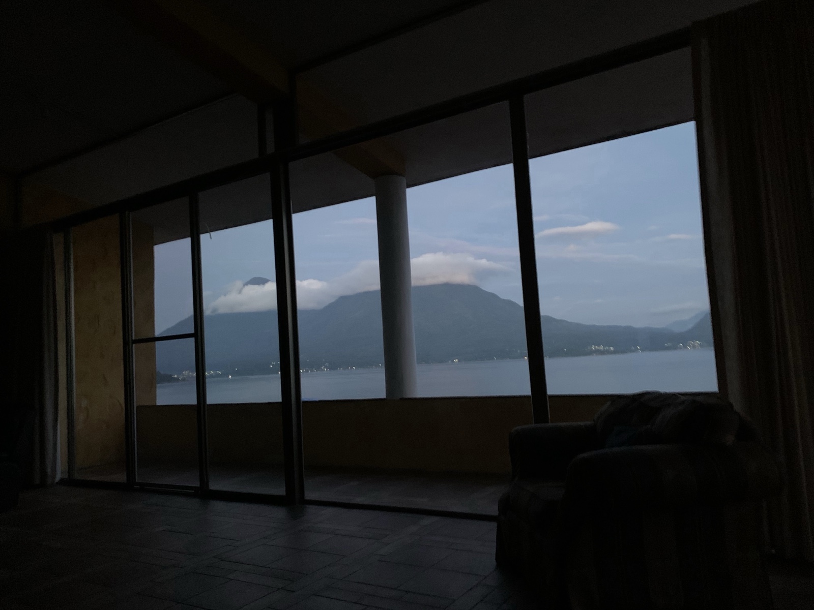 On the main floor there was an observation deck where you could sit and look at a 180-degree panoramic view of the entire lake, surrounded by several volcanoes.