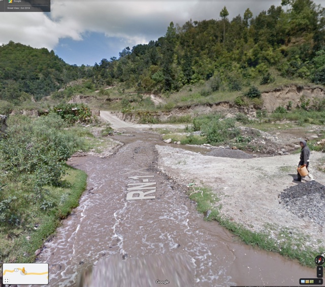 After our trip, I looked on Google Maps, and found that sure enough, the "street view" takes you right through the river, too. (There's even a guy in the street view picture adding gravel to the "road", which is probably what makes it reasonable to cross). I wonder what people do when it's raining and the river is high...