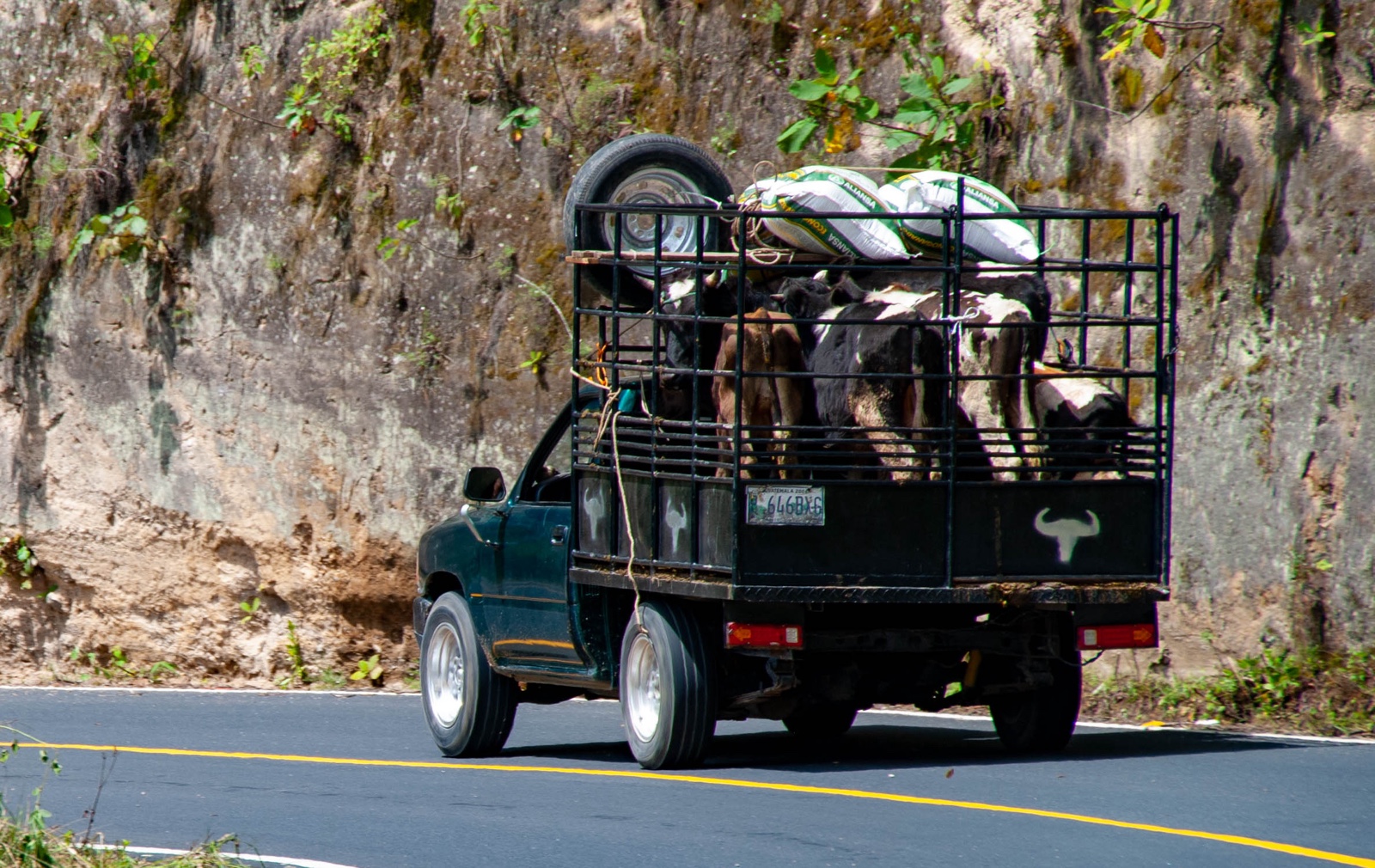 We even saw cows in the back of a pickup a couple times. It seems like these could tip over if the cows leaned wrong on a corner (!).