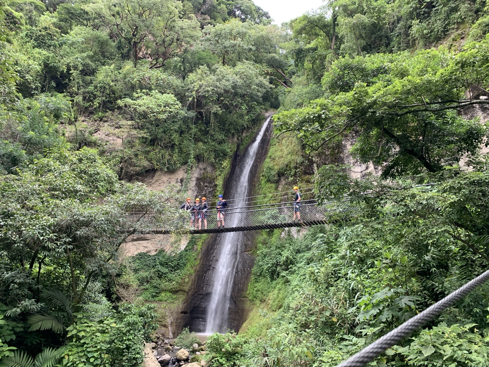 There was a cool waterfall that we saw on the way up from one of the suspension bridges.