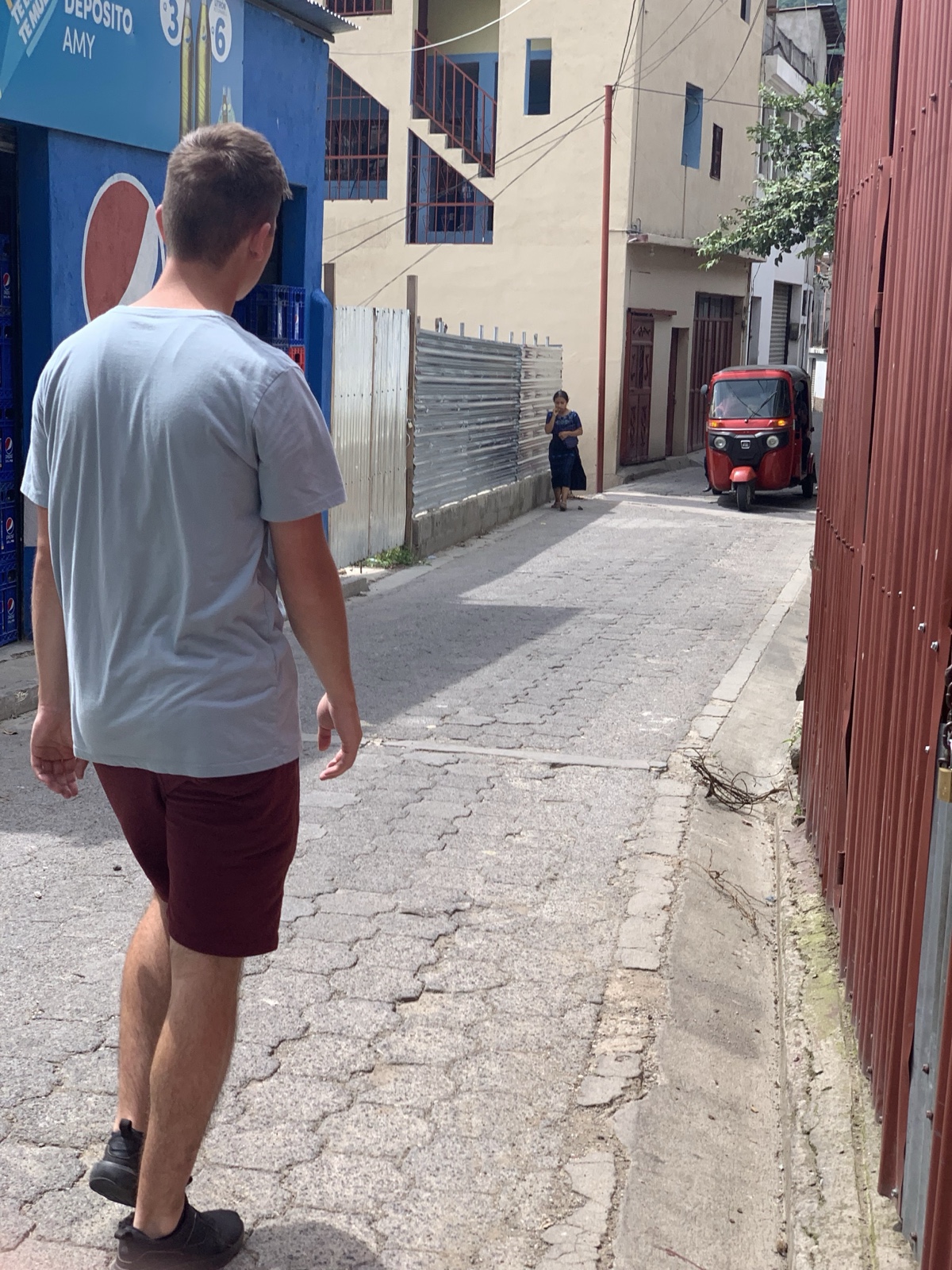 One time, we went up a street that was so steep that our car stalled. Jared and I jumped out in order to lighten the load, and had to help push the car up. A couple Guatemalan teenage boys ran over to help us, and Linette eventually got the car up to the top of the hill.