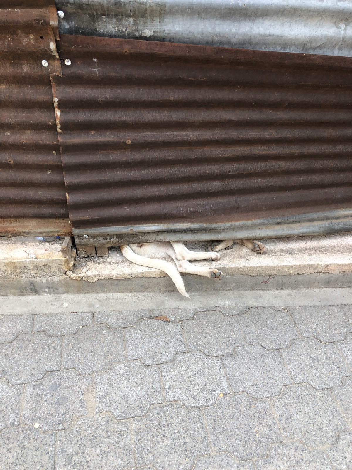 Tin roofs are common there. Here you can see some of the traditional clothing being laid out to dry in the sun.
