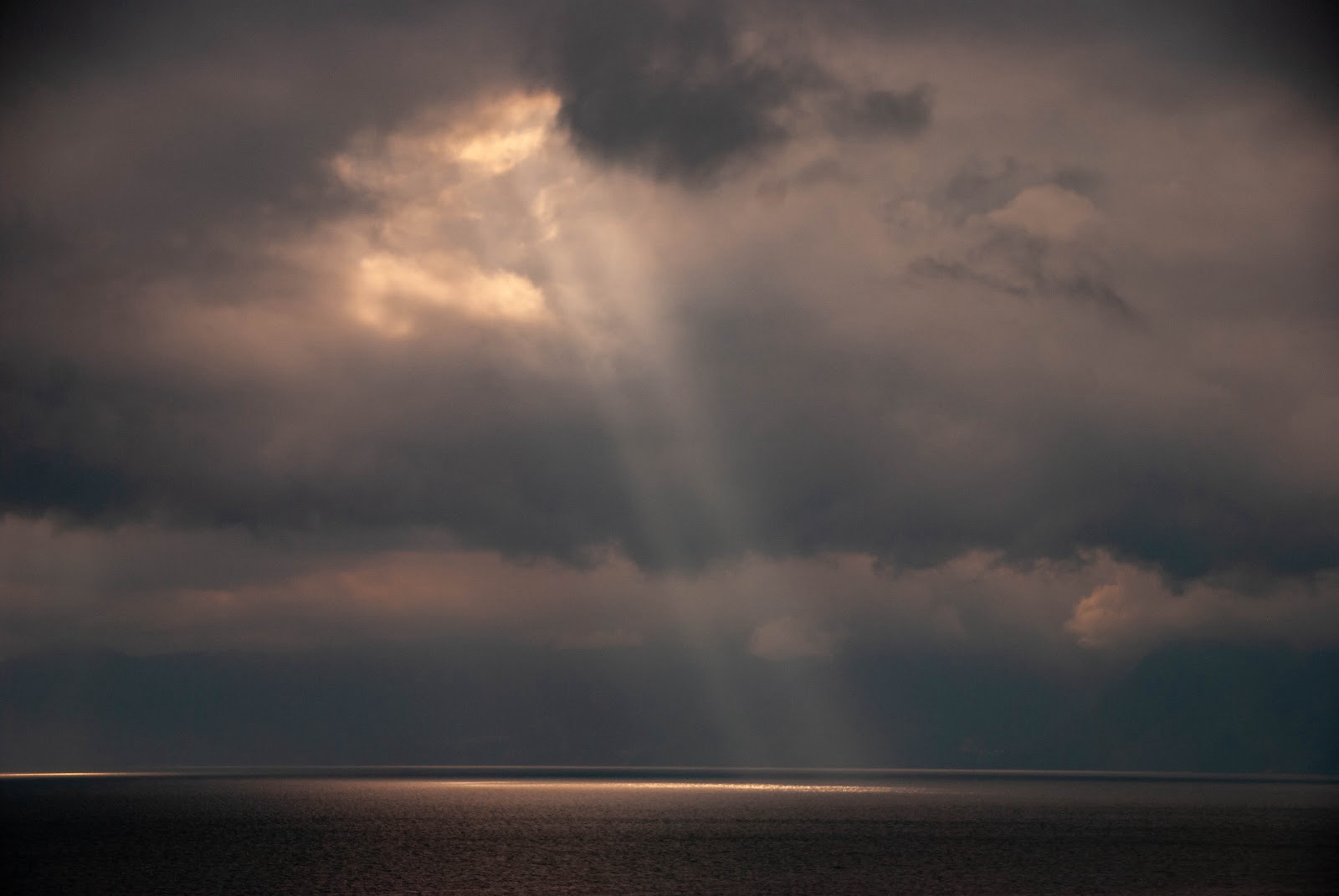 The rain soon stopped, and the lake was calm again as the sun began to set.