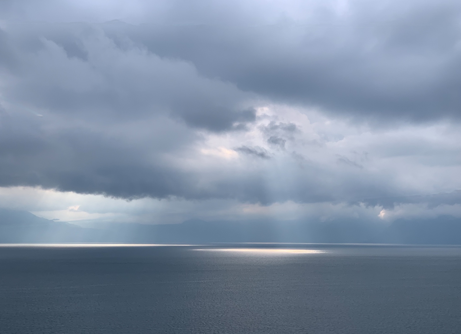 The sun, clouds and lake interacted nicely on our way back to the house.